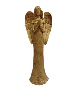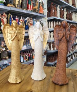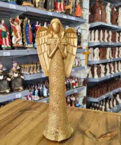 Encante seu ambiente com a delicadeza e o simbolismo desta linda anja em resina, com acabamento dourado e traços suaves que transmitem paz, proteção e amor.