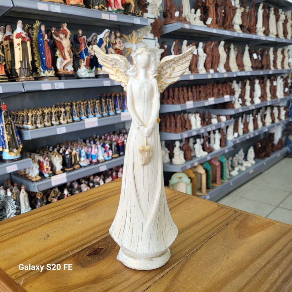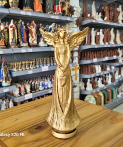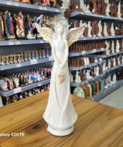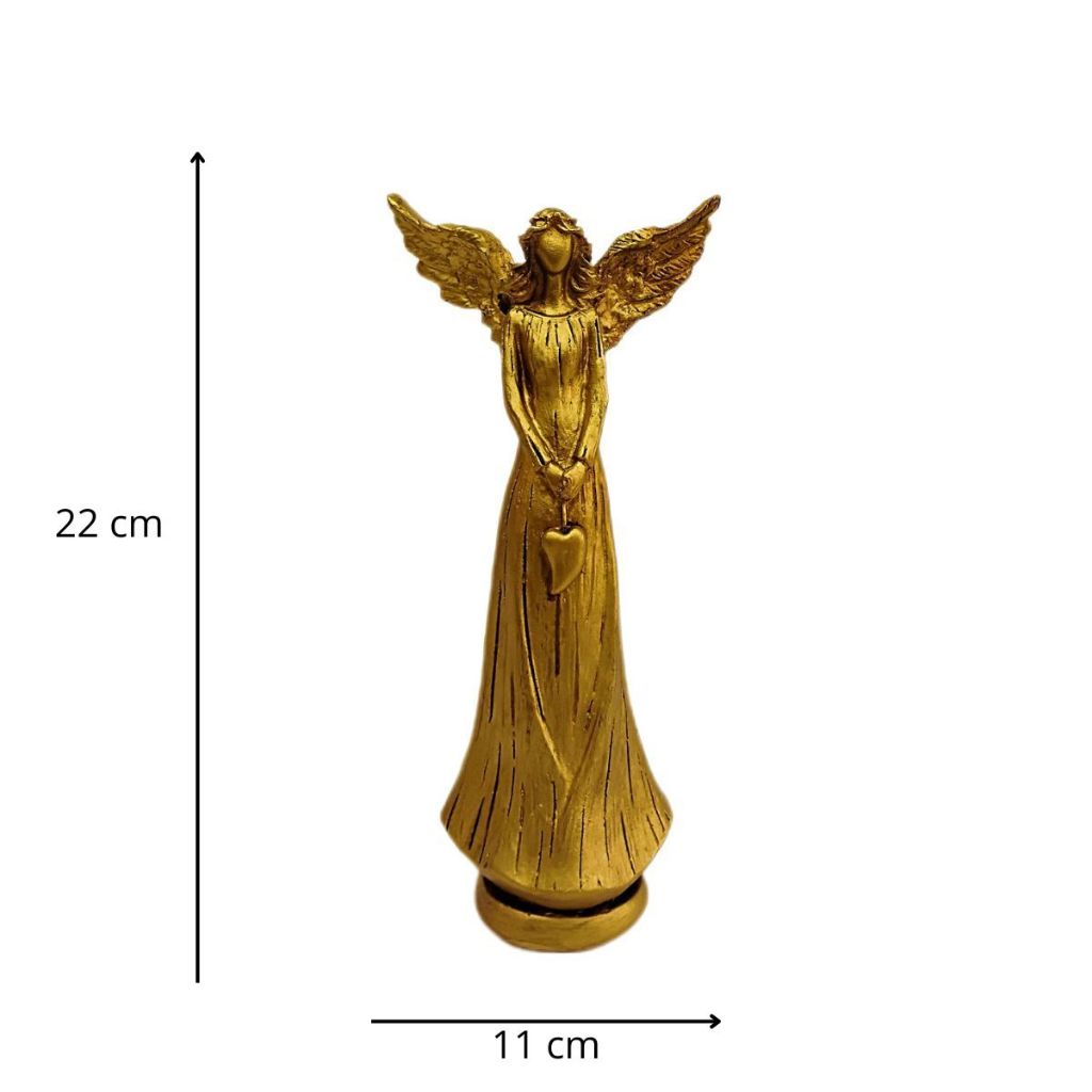 Encante seu ambiente com a delicadeza e o simbolismo desta linda anja em resina, com acabamento dourado e traços suaves que transmitem paz, proteção e amor.