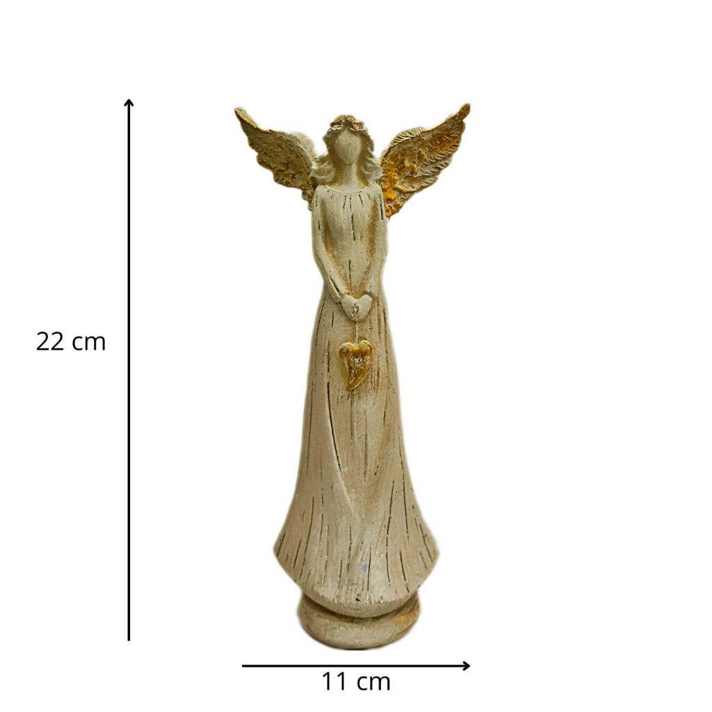 Estátua Decorativa Anjo com Coração de Resina – 22cm