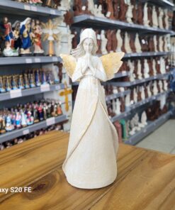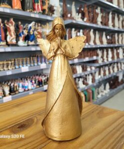 Encante seu ambiente com a delicadeza e o simbolismo desta linda anja em resina, com acabamento dourado e traços suaves que transmitem paz, proteção e amor.