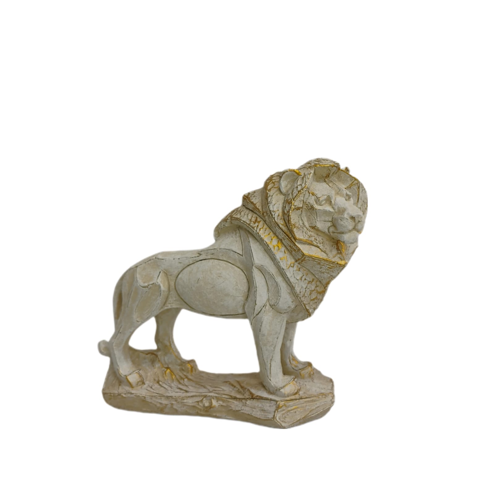 Majestosa e cheia de presença, esta escultura de leão em resina representa poder, coragem e liderança. Com acabamento em tons de cinza e dourado, a peça combina força e elegância, tornando-se um destaque em qualquer ambiente.