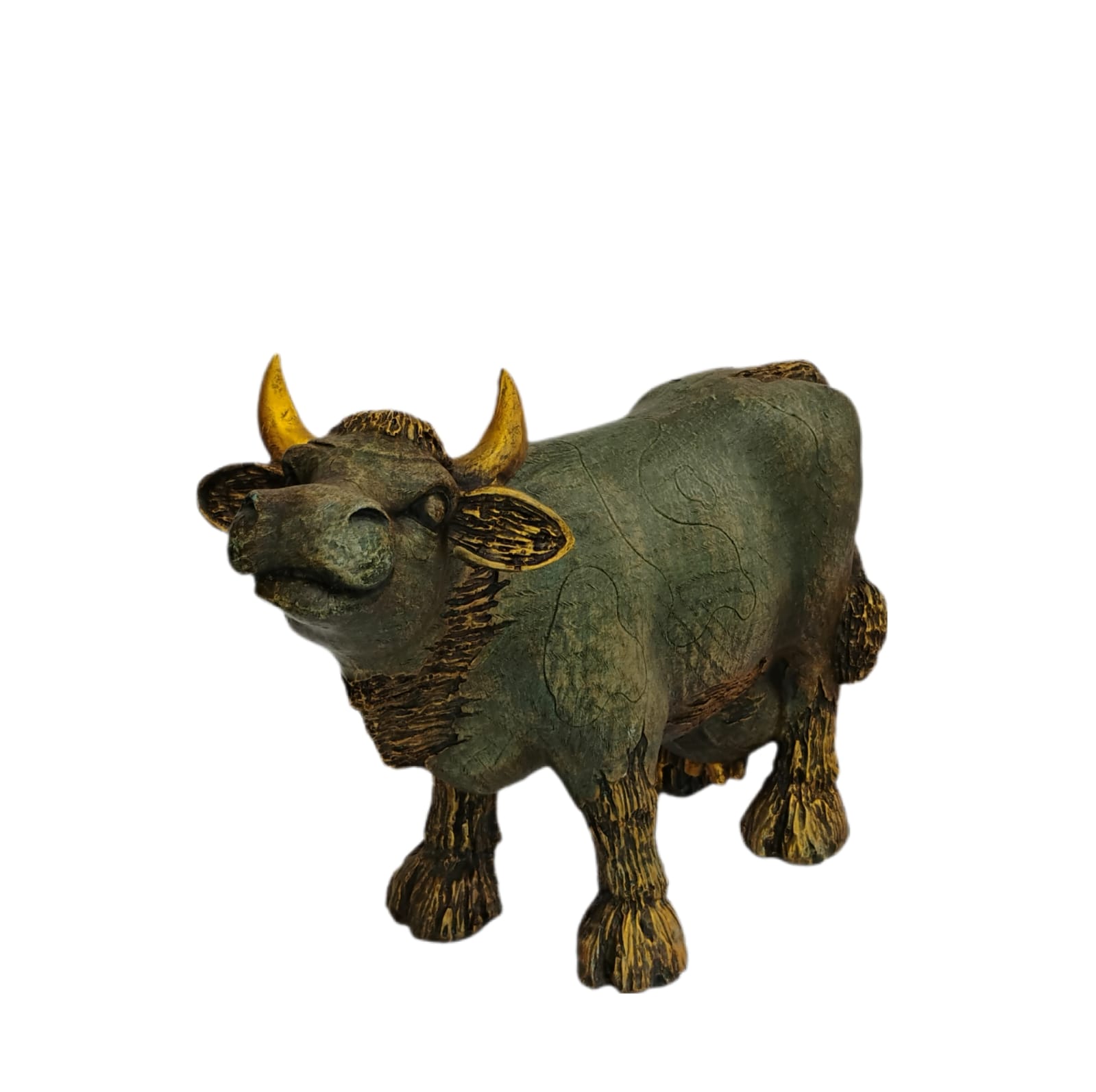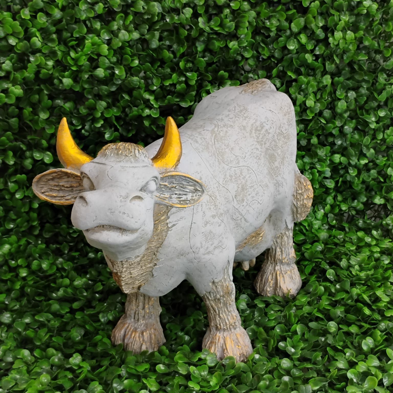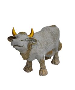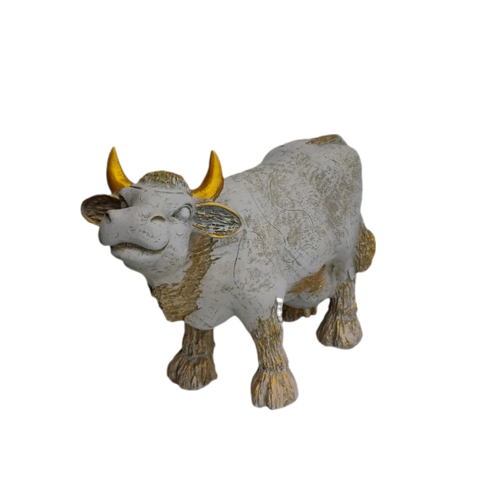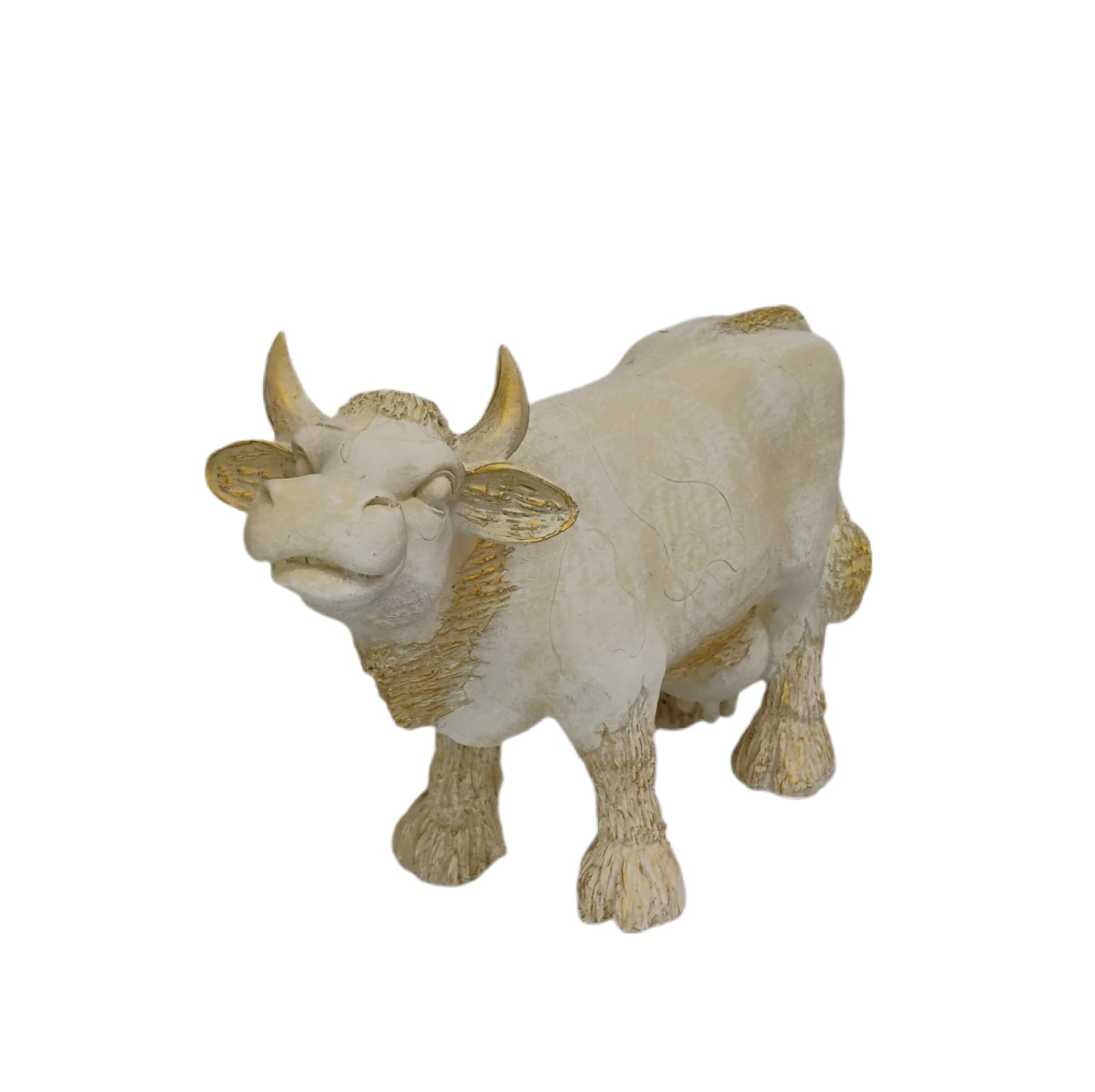 Design: Vaca com chifres dourados e acabamento artístico texturizado