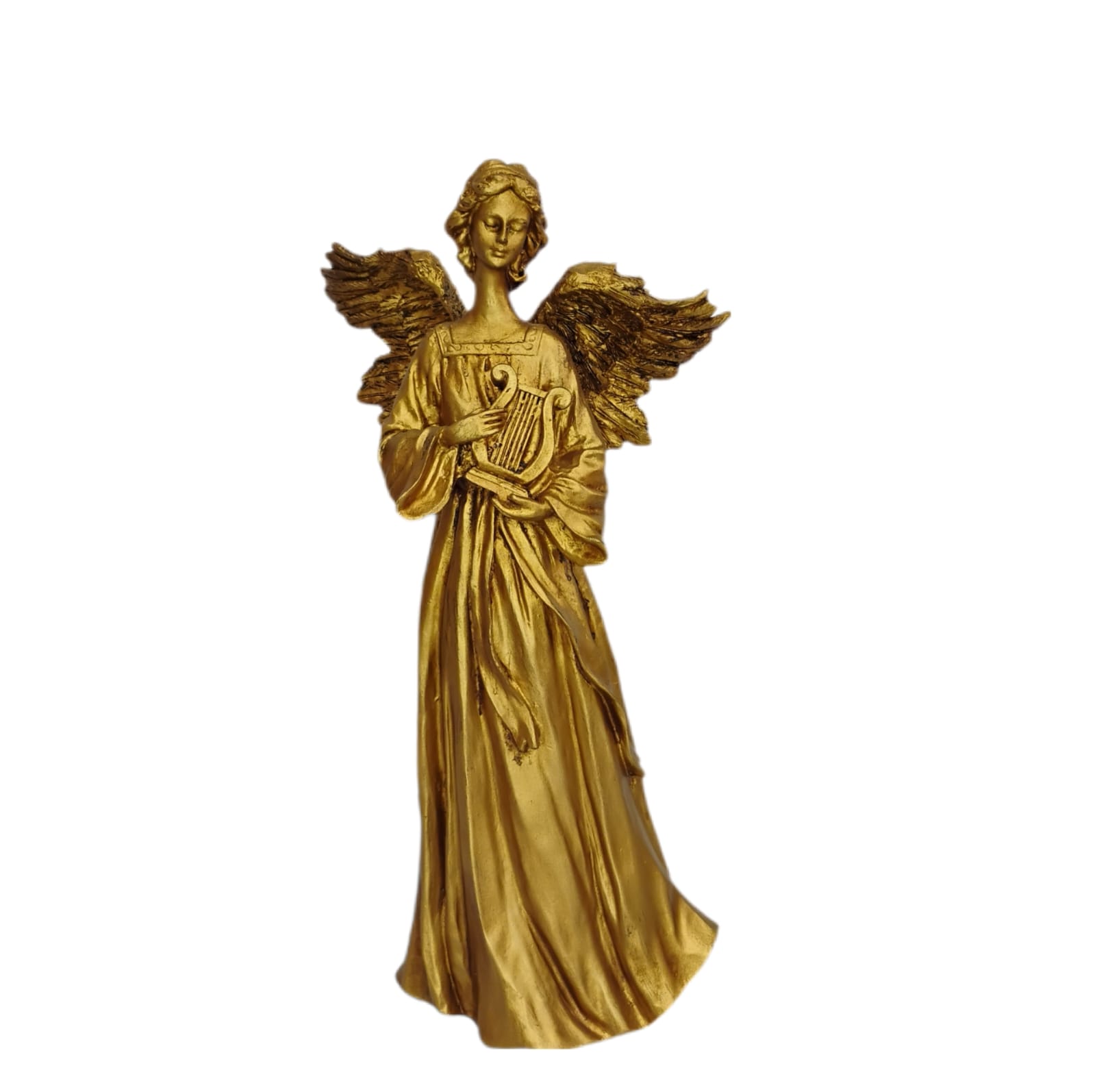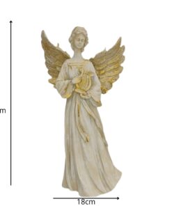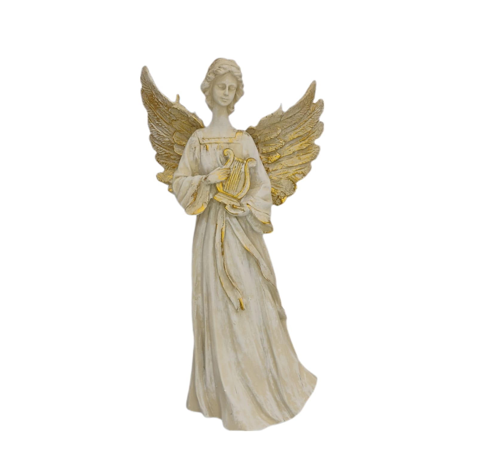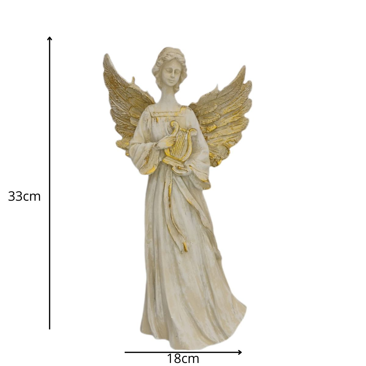 Estátua de Anjo Tocando Harpa de Resina – 33×18 cm