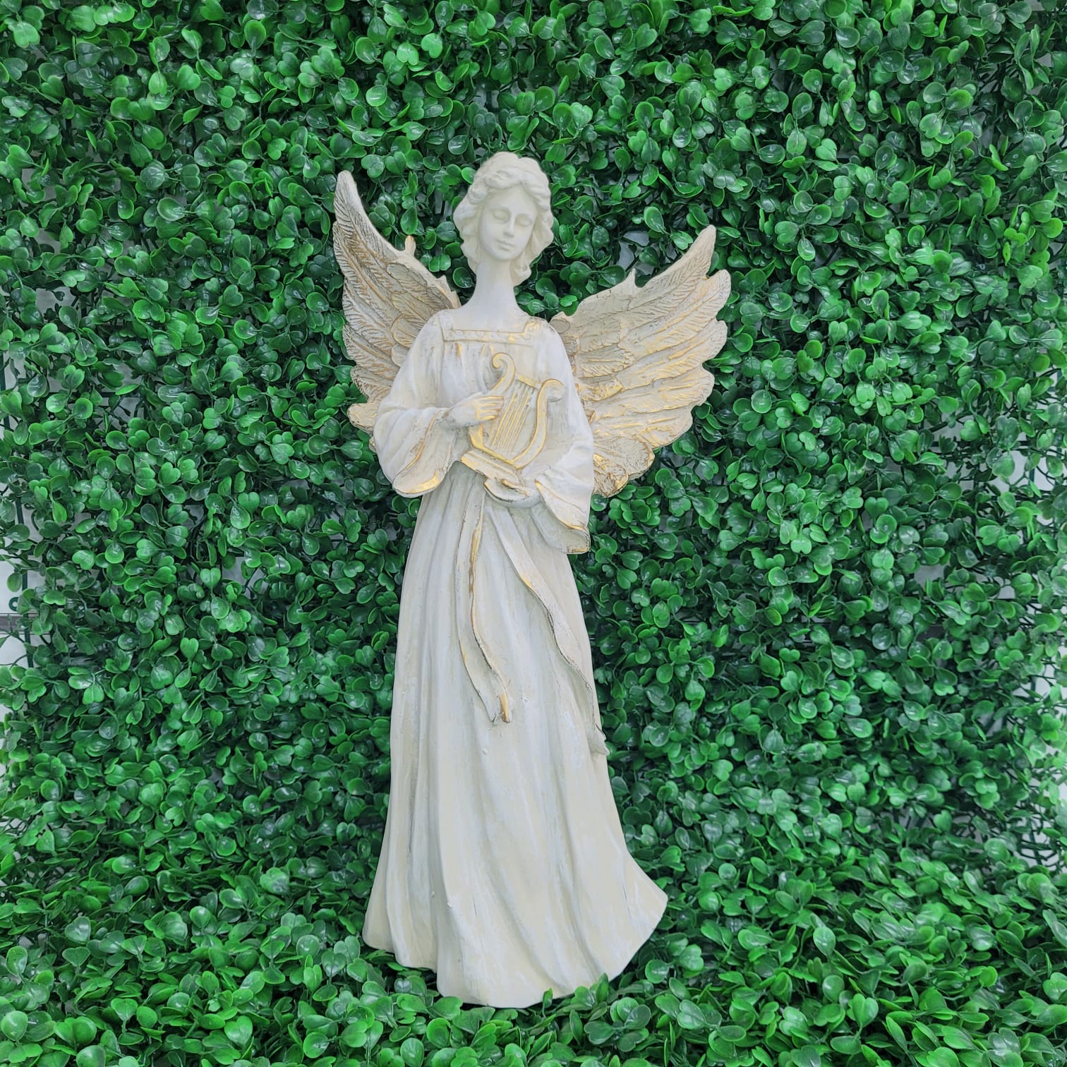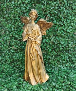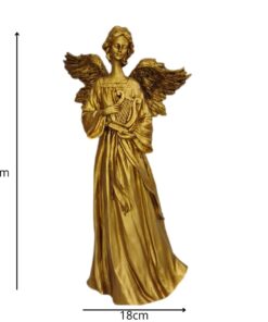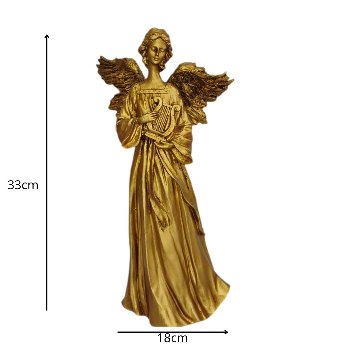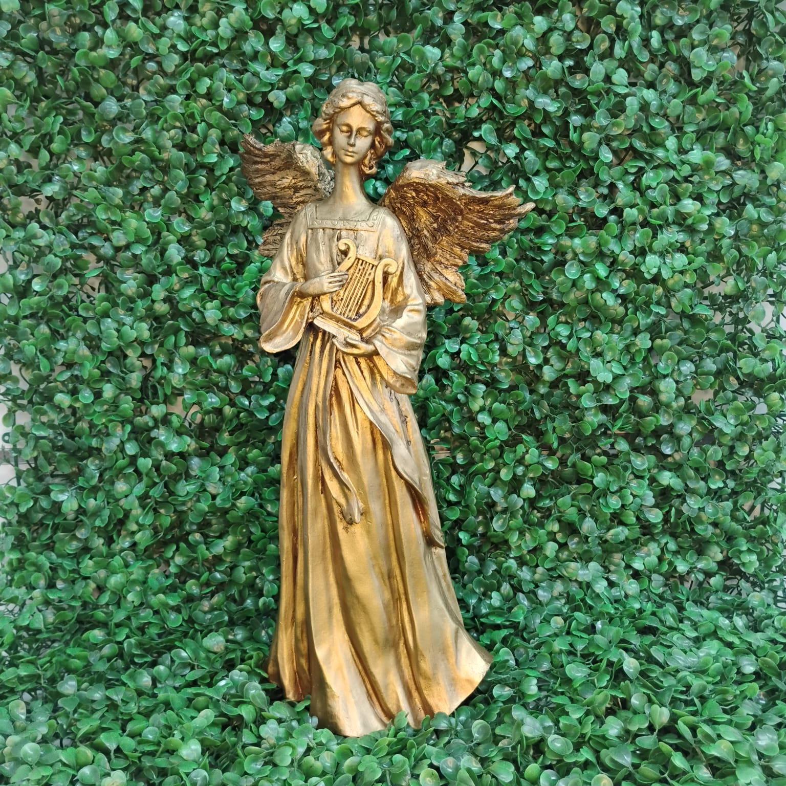 Estátua de Anjo Tocando Harpa de Resina – 33×18 cm