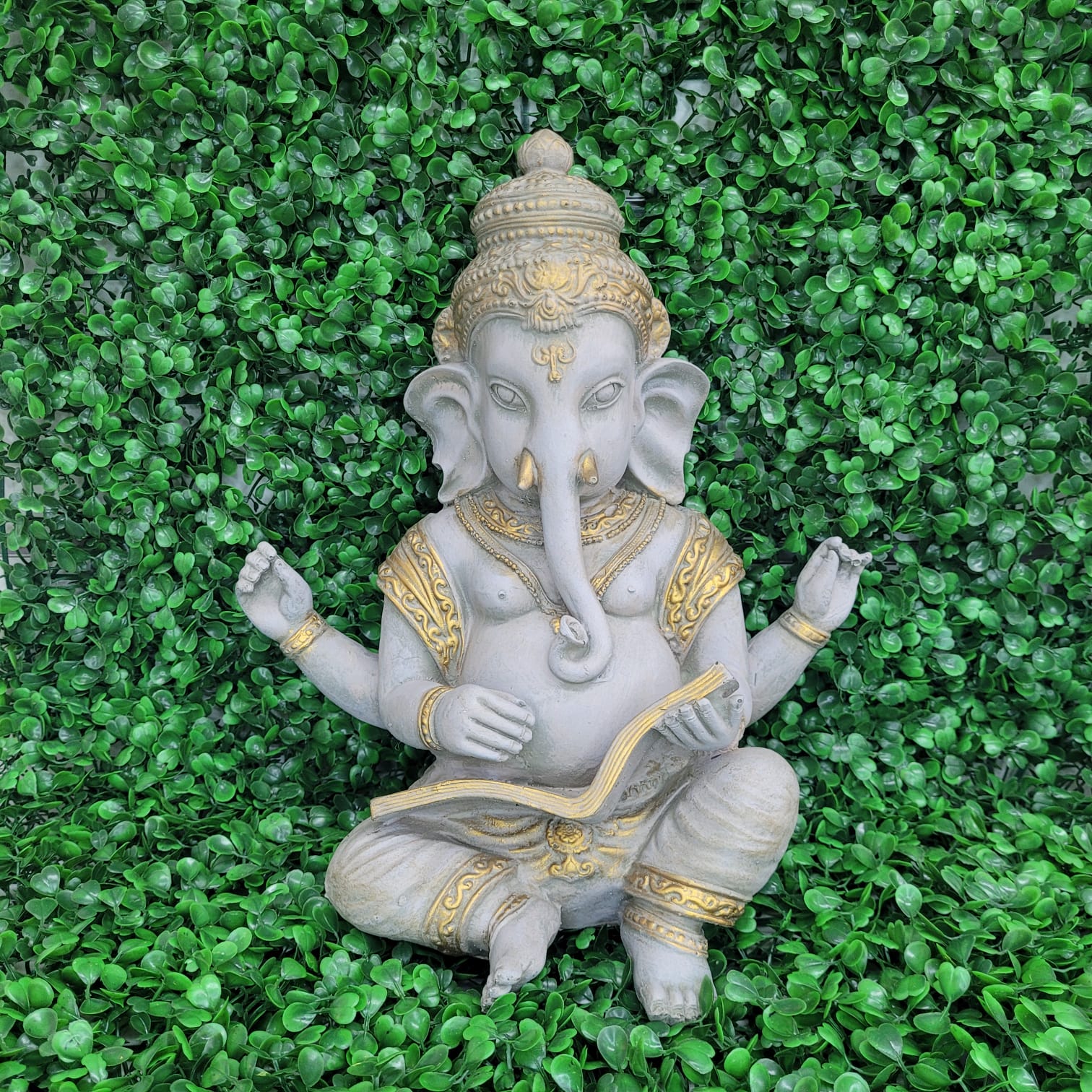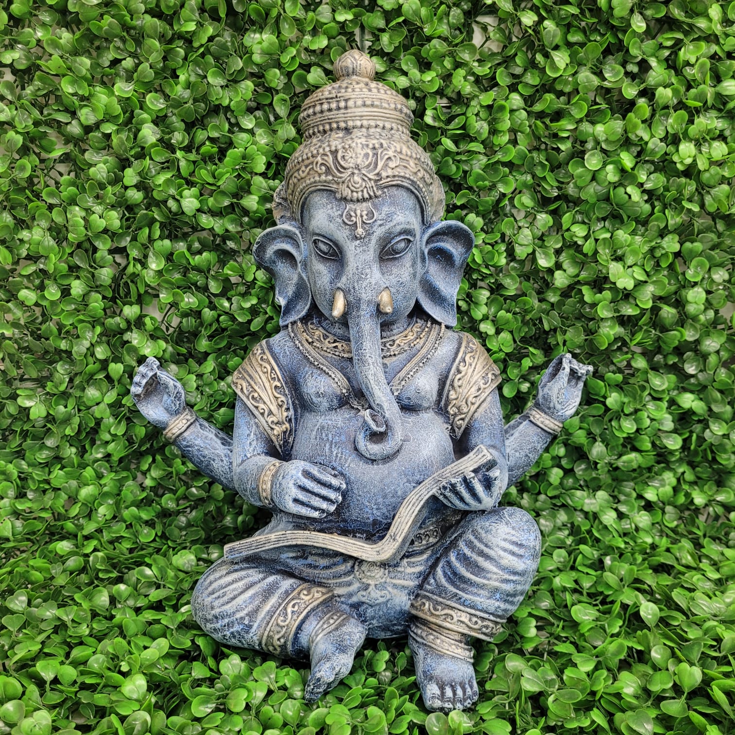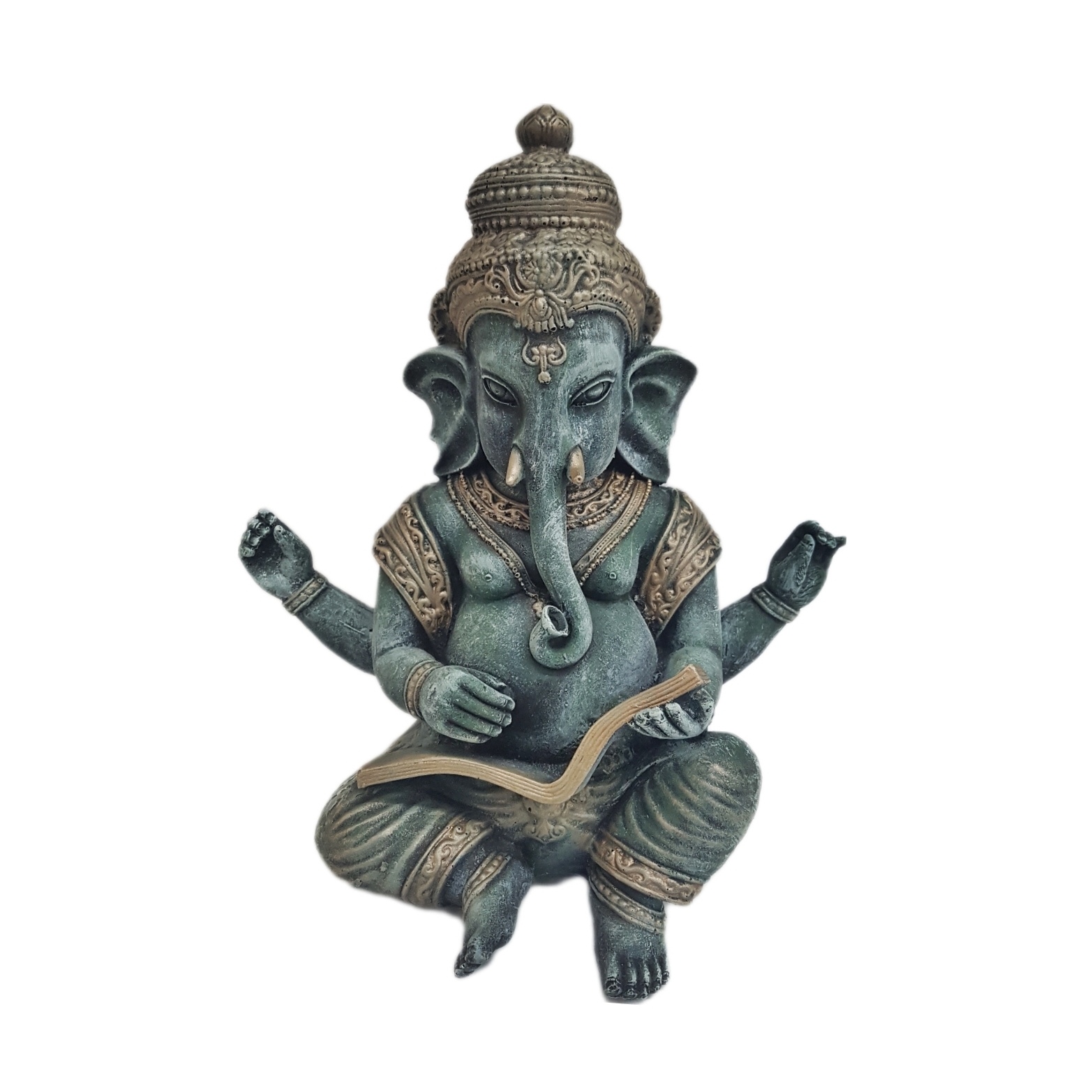 Estátua de Ganesha Sentado com Livro de Resina – 30×25,5 cm