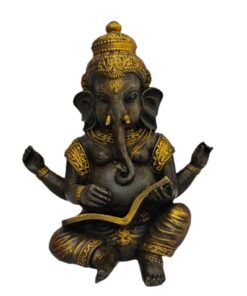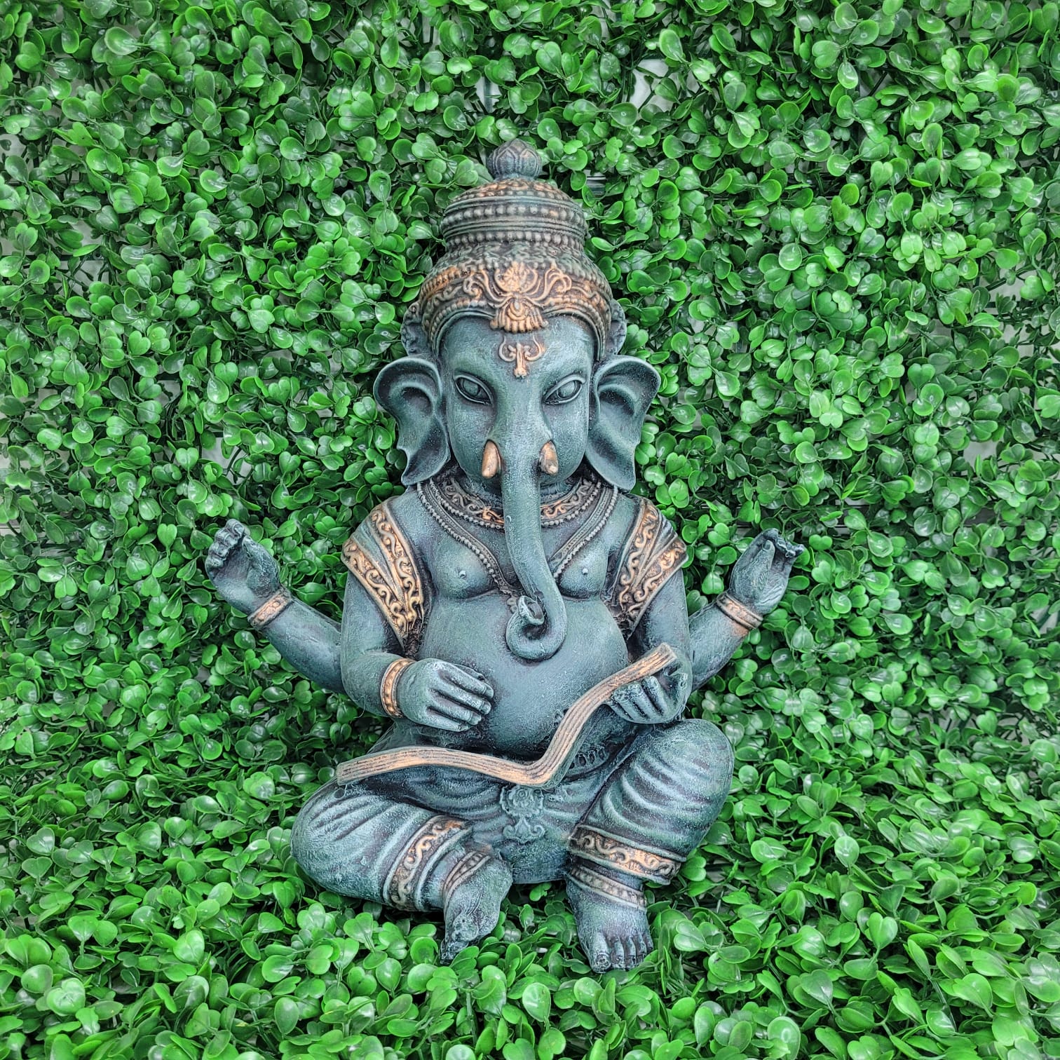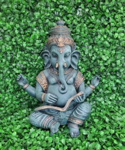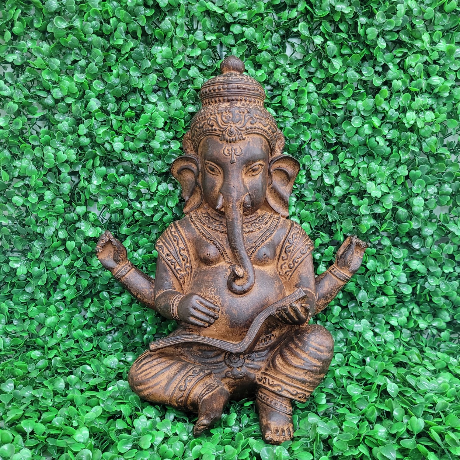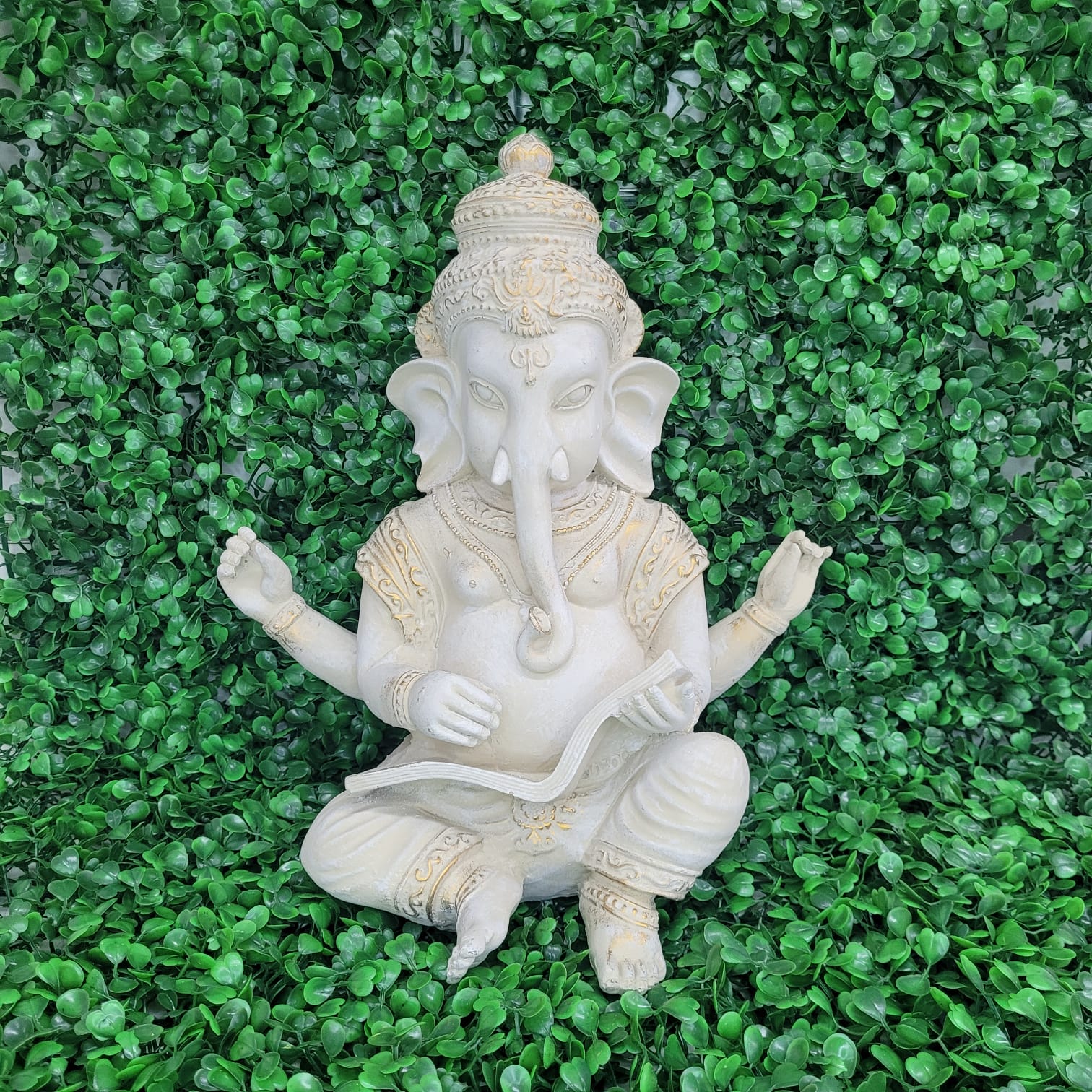 Estátua de Ganesha Sentado com Livro de Resina – 30×25,5 cm