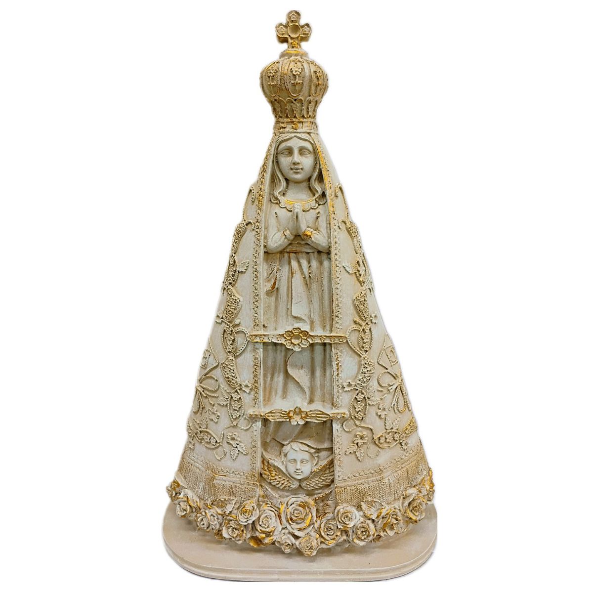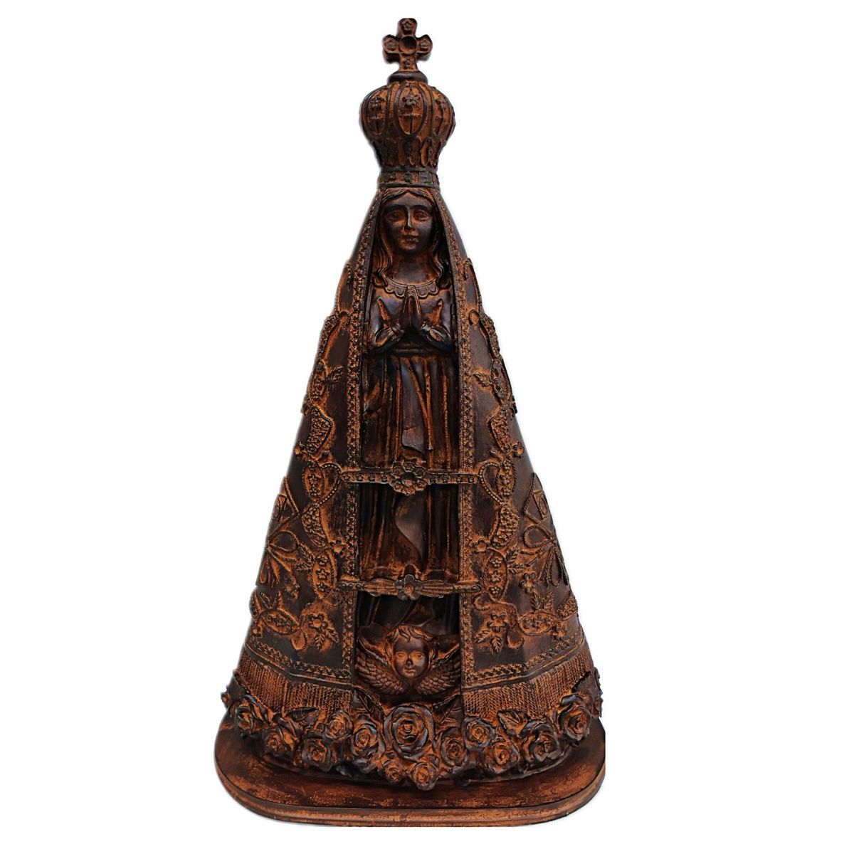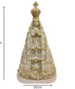 Nossa Senhora Aparecida, Padroeira do Brasil, é símbolo de fé, esperança e proteção para milhões de devotos. Sua imagem representa a presença materna de Maria junto ao povo brasileiro, especialmente nos momentos de dificuldade e gratidão. Esta imagem de Nossa Senhora Aparecida, feita em resina com pintura 100% artesanal, leva ao seu lar ou altar uma presença de amor, paz e devoção.