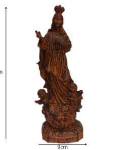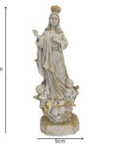 Com 28 cm de altura e 9 cm de largura, a peça é esculpida com detalhes que refletem a beleza, a pureza e a graça de Nossa Senhora da Conceição, sendo ideal para quem busca fortalecer sua fé e confiança na intercessão de Maria.