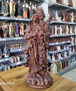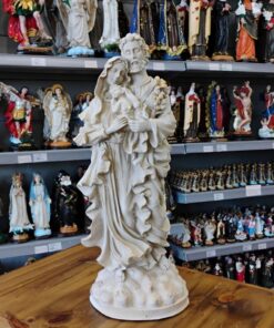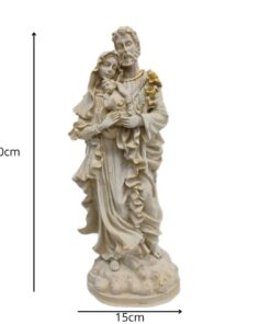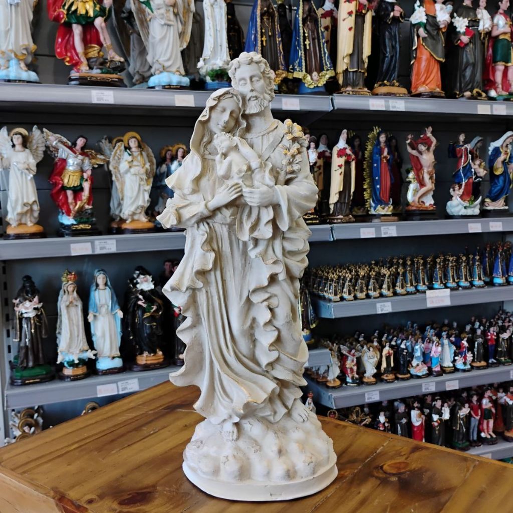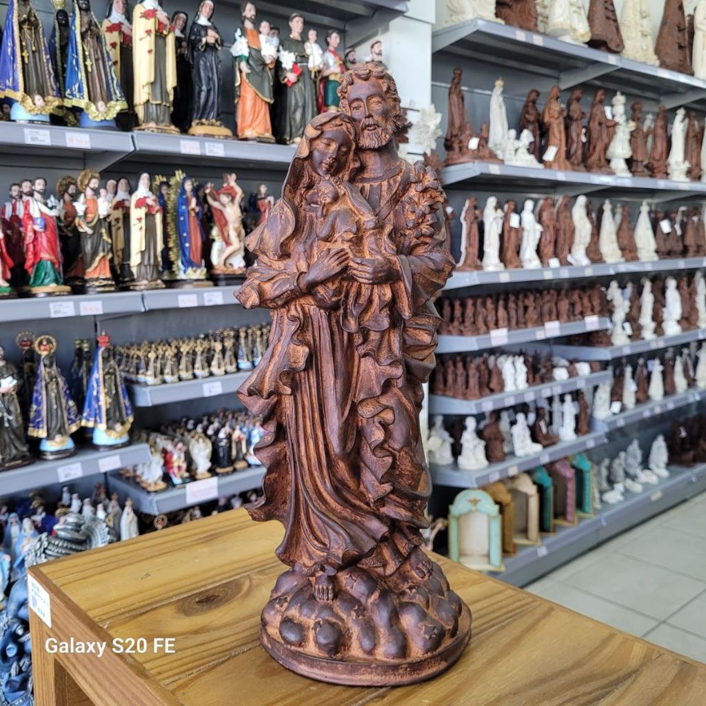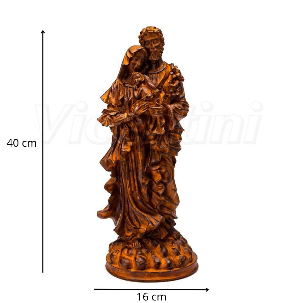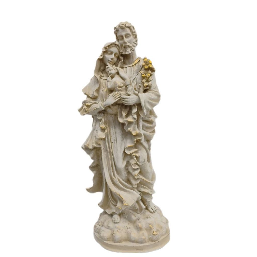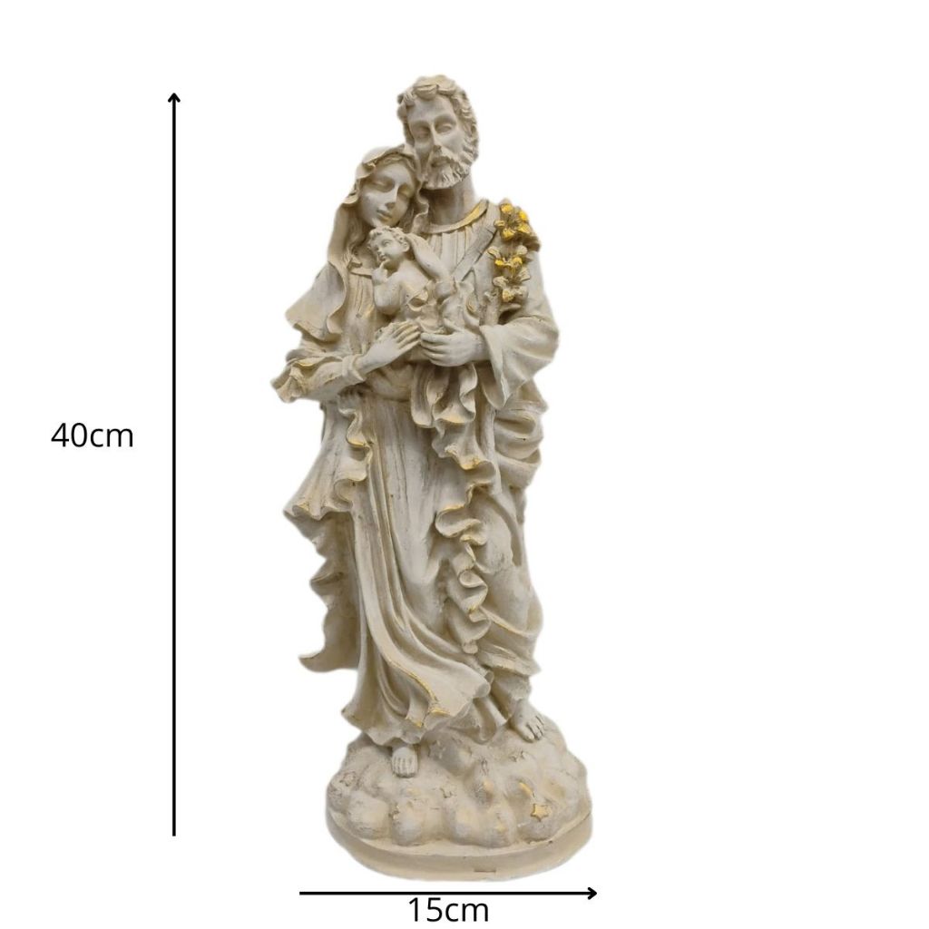 Com 40 cm de altura e 16 cm de largura, a peça é esculpida com delicadeza e beleza, destacando os traços serenos e a harmonia entre os membros da família sagrada. Uma escolha perfeita para quem deseja consagrar o próprio lar à proteção e intercessão da Sagrada Família.