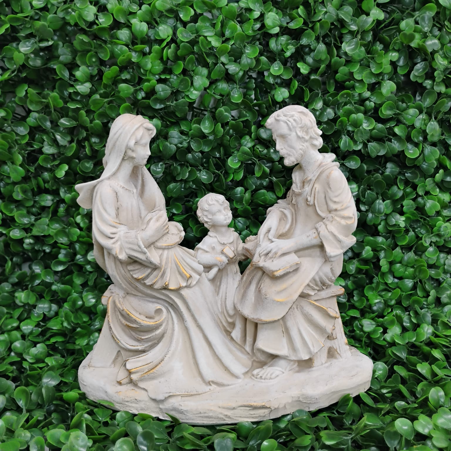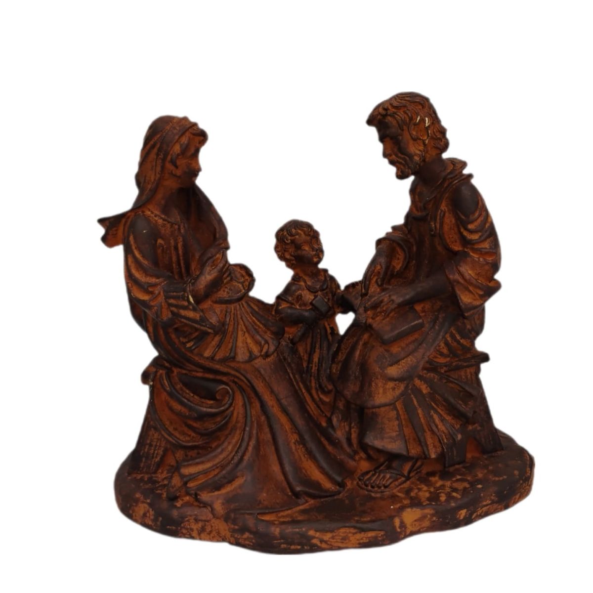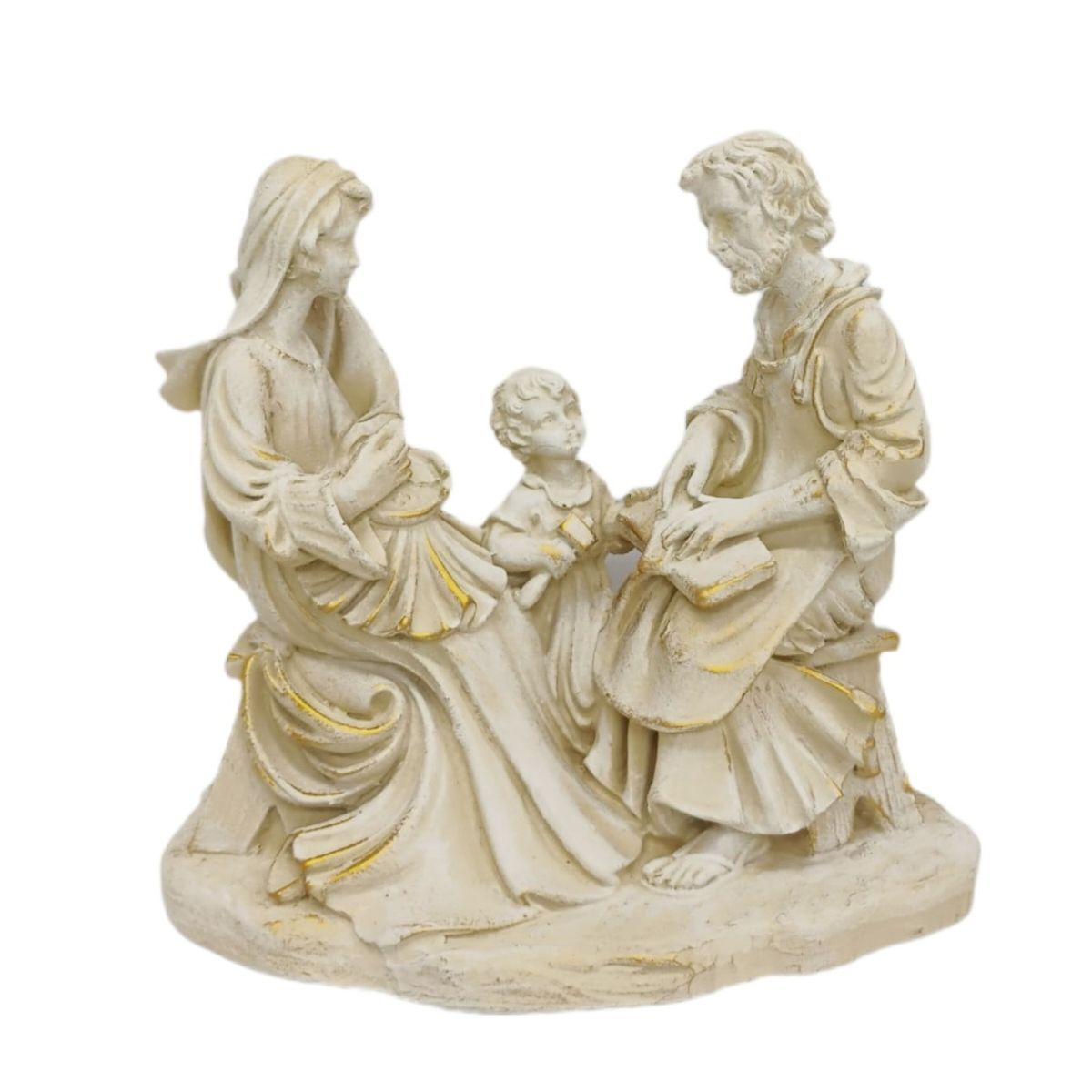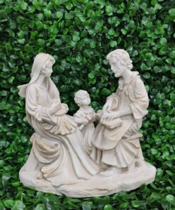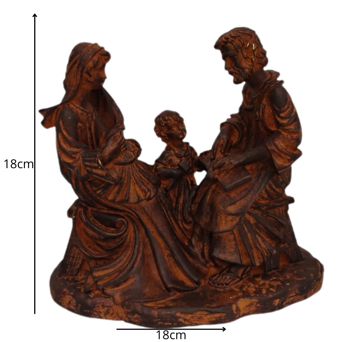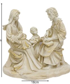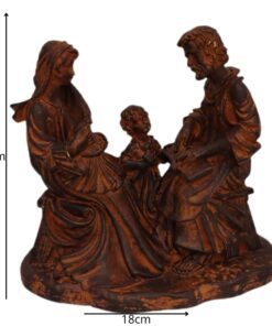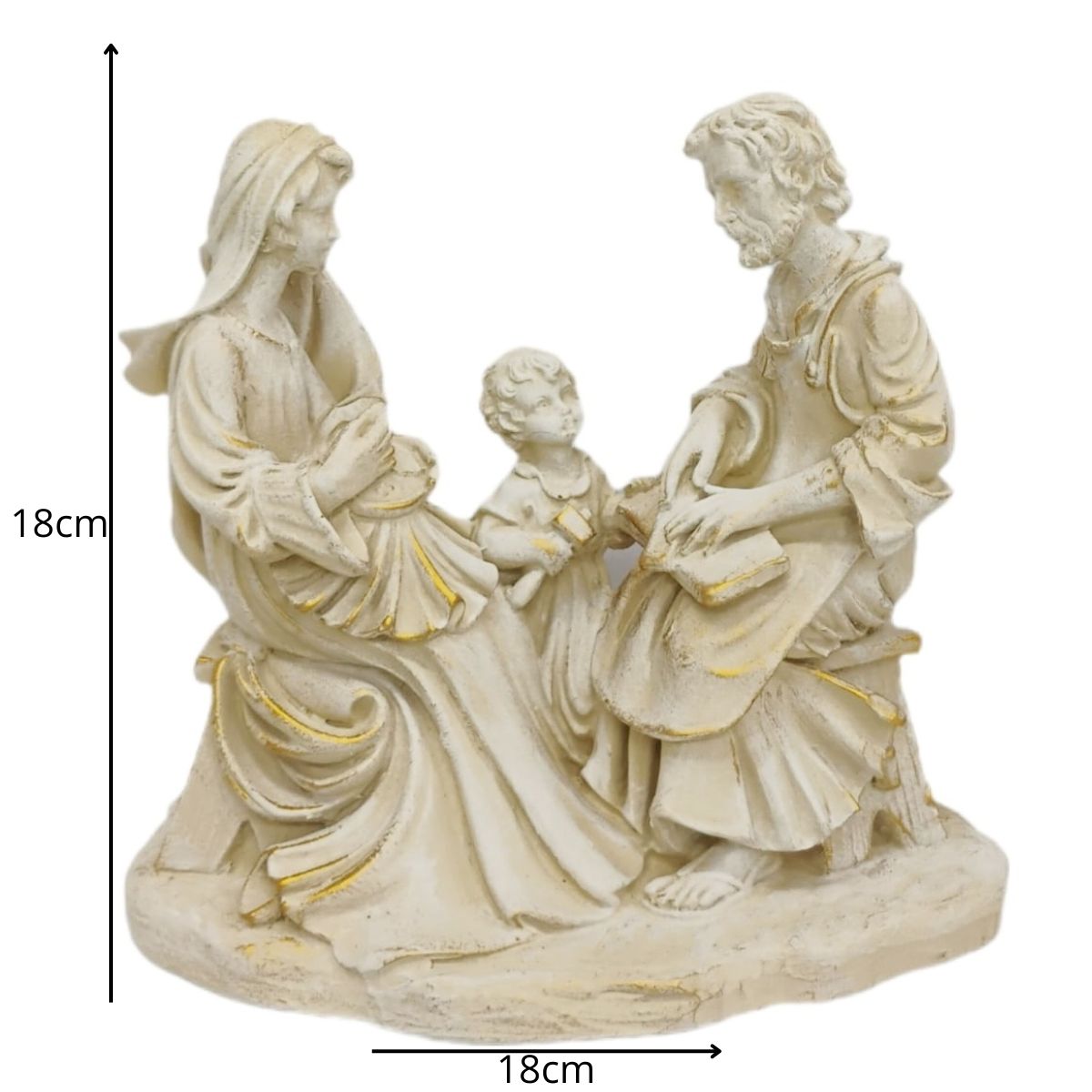 Com cm de altura 18 e 18 cm de largura, a peça é esculpida com delicadeza e beleza, destacando os traços serenos e a harmonia entre os membros da família sagrada. Uma escolha perfeita para quem deseja consagrar o próprio lar à proteção e intercessão da Sagrada Família.