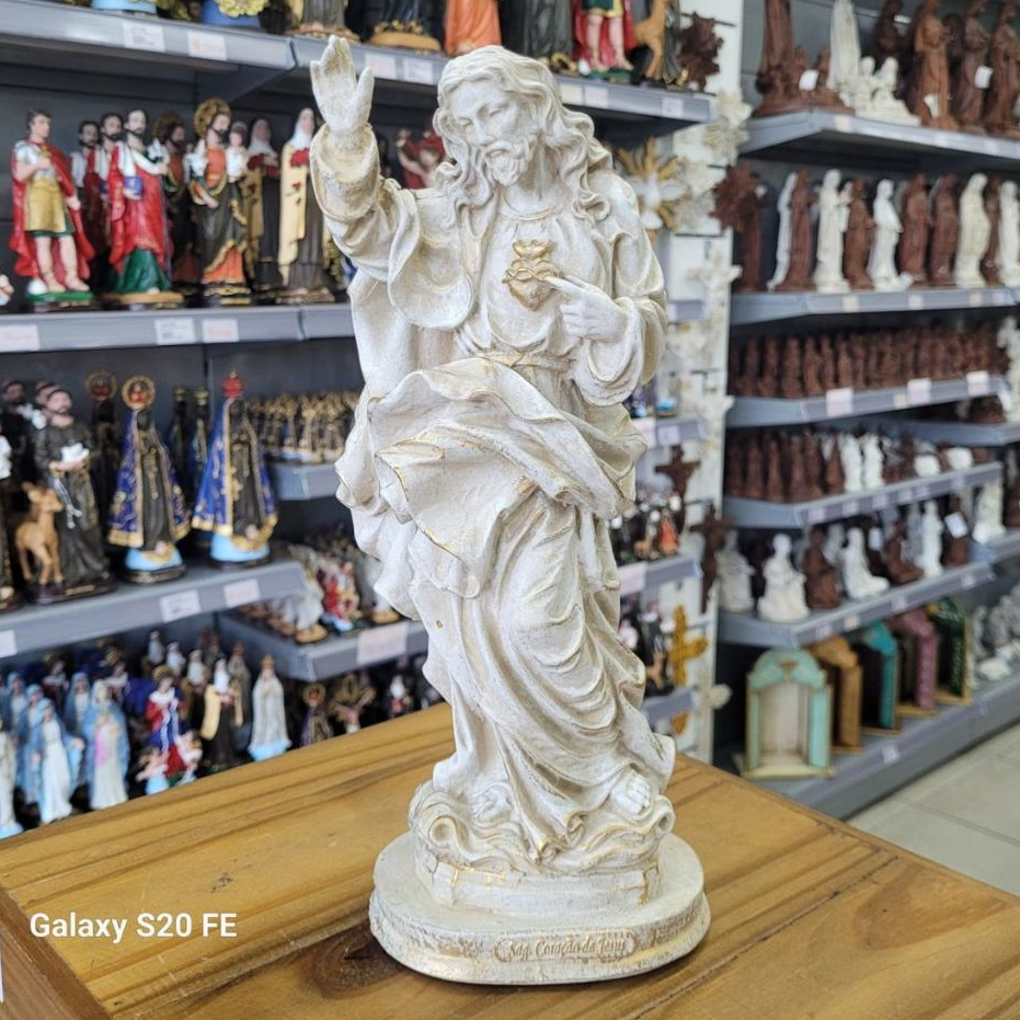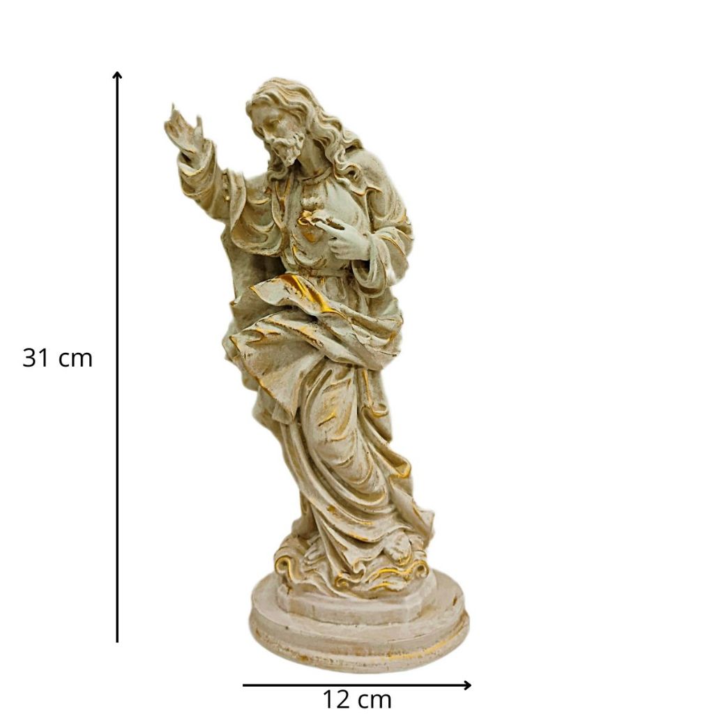 Estátua de Resina Sagrado Coração de Jesus – Resina, Pintura Artesanal (31×12 cm)