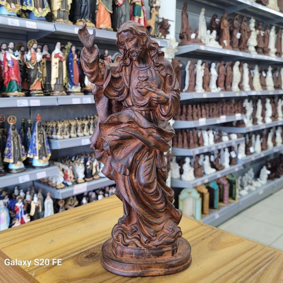 Esta belíssima estátua do Sagrado Coração de Jesus é uma verdadeira obra de arte para sua casa ou altar. Com 31 cm de altura e 12 cm de largura, ela é feita de resina de alta qualidade, garantindo durabilidade e detalhes impressionantes. Cada peça é cuidadosamente pintada à mão, o que torna cada uma única, com acabamentos refinados e expressivos.