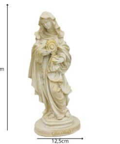Com 30 cm de altura e 12,5 cm de largura, esta imagem é feita em resina de alta qualidade, com pintura 100% artesanal, destacando a serenidade e delicadeza de seus traços. Ideal para altares, oratórios ou como presente especial de fé e devoção.