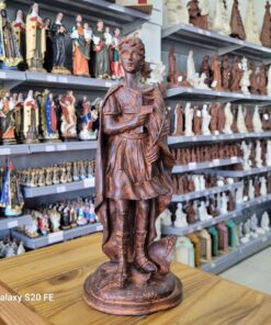 Com 40 cm de altura e 15,5 cm de largura, a peça é ricamente esculpida, representando o santo com sua tradicional cruz e a palavra “HODIE” (hoje), lembrando-nos da importância de agir com fé no presente. Ideal para quem busca reforçar sua confiança e entregar suas causas a este poderoso intercessor.