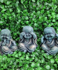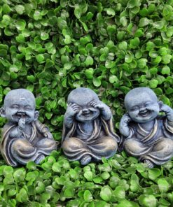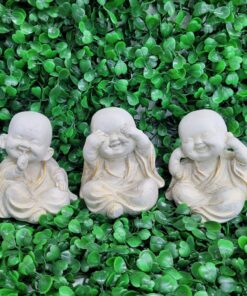 Encante-se com este trio de Budas da Sabedoria em versão infantil, representando os ensinamentos “não ver o mal, não ouvir o mal e não falar o mal”. Cada peça transmite pureza, inocência e serenidade, simbolizando a busca pela paz interior e sabedoria espiritual.