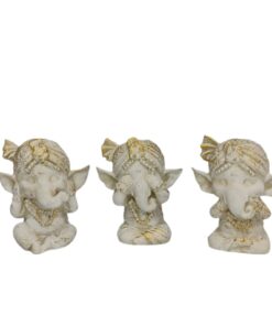 Traga boas energias e proteção para o seu ambiente com este trio de Ganesha da sabedoria, representando os ensinamentos “Não vejo o mal, não falo o mal e não ouço o mal”. Símbolo de pureza, equilíbrio e sabedoria interior, essas pequenas esculturas são perfeitas para inspirar harmonia e positividade no dia a dia.