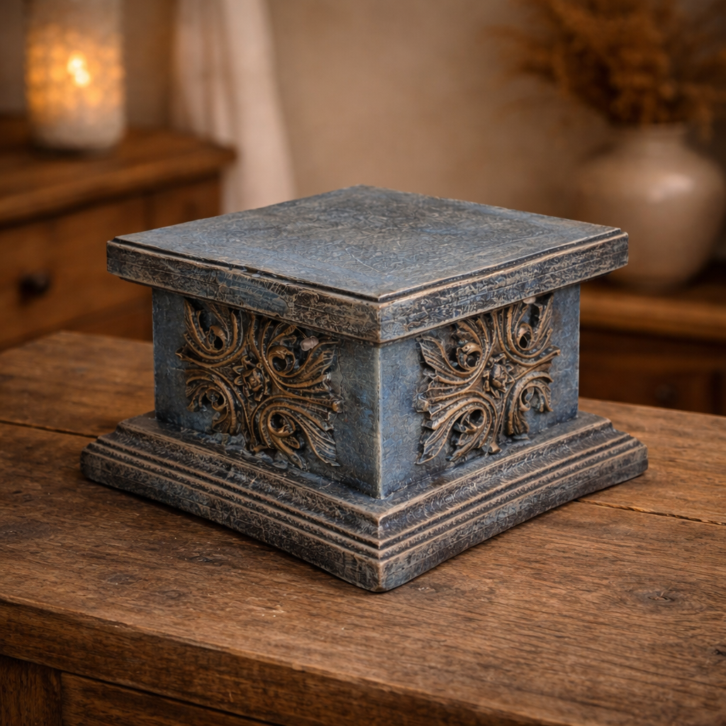 A Base Quadrada Decorativa é uma peça versátil e sofisticada, ideal para elevar e valorizar imagens religiosas, castiçais, vasos, esculturas e objetos decorativos. Seu formato clássico e acabamento detalhado trazem harmonia, equilíbrio e requinte à composição do seu ambiente.
