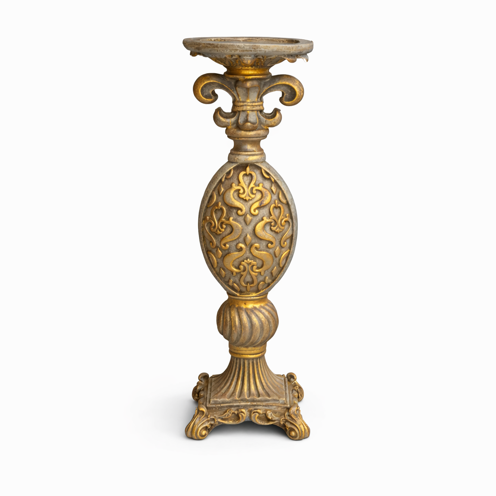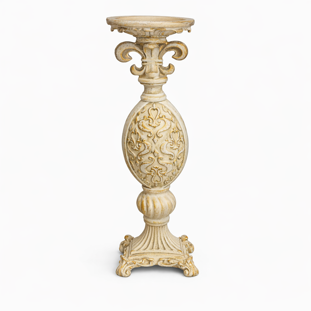 Confeccionado em resina de alta qualidade, com acabamento trabalhado e resistente, o Castiçal Arabesco une beleza estética e funcionalidade, garantindo presença visual e durabilidade.