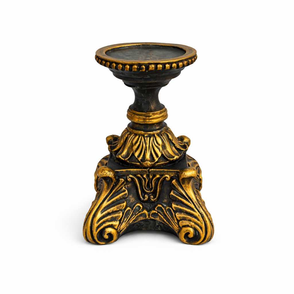 Confeccionado em resina de alta qualidade, com acabamento detalhado e textura realista, este castiçal une beleza estética, resistência e forte simbolismo, tornando-se uma peça decorativa marcante e funcional.