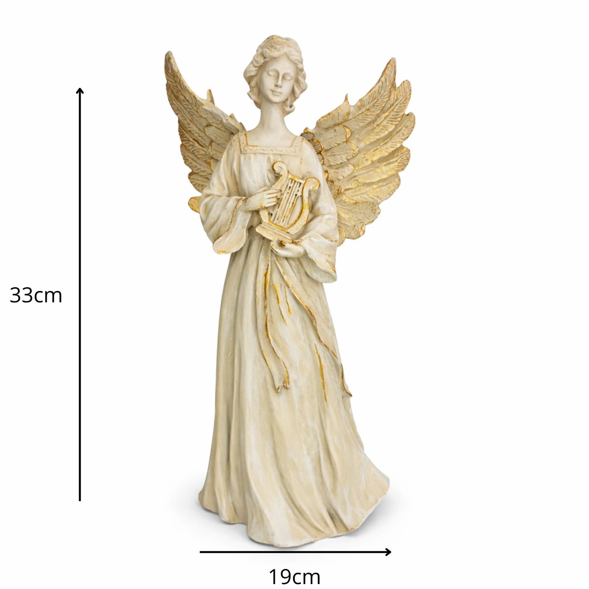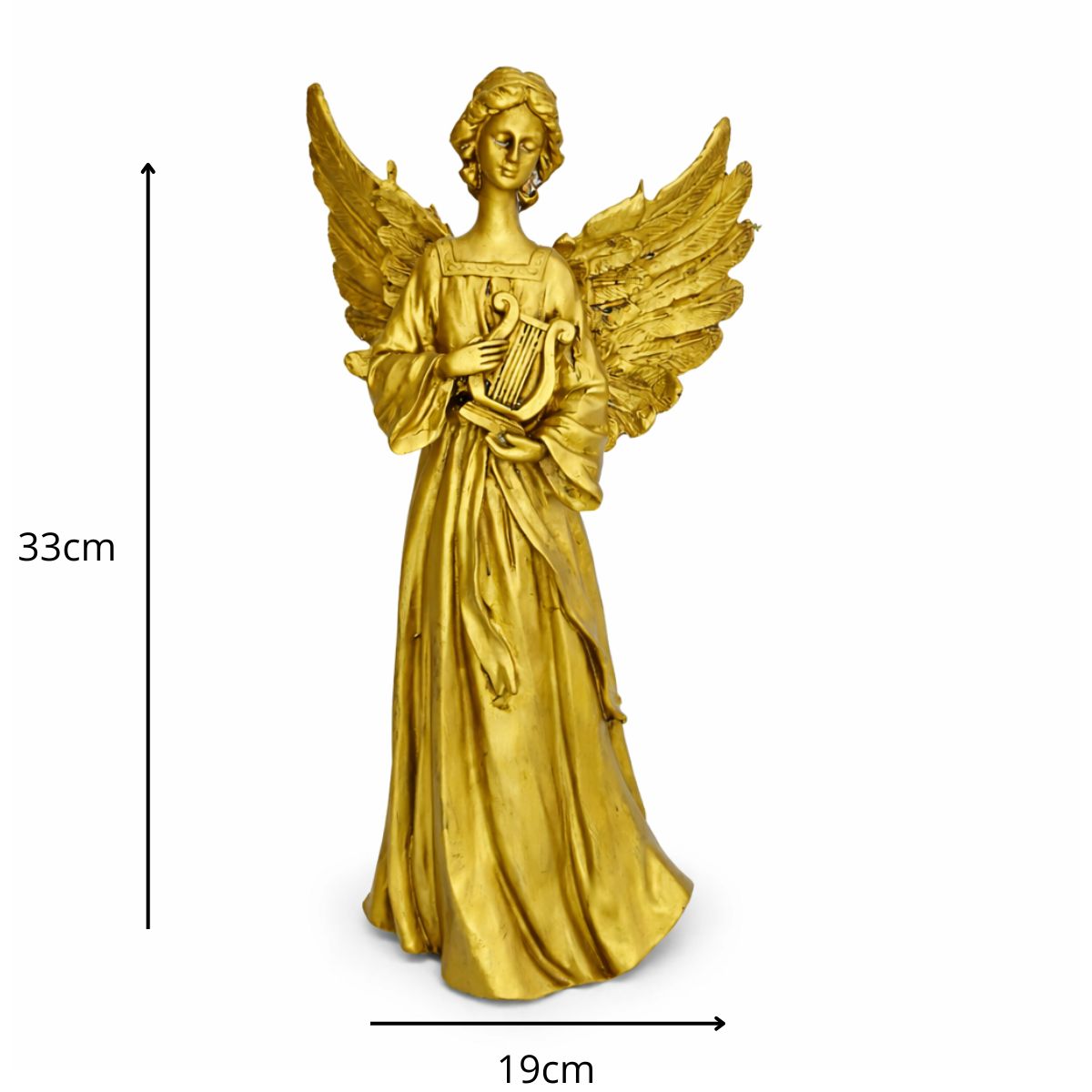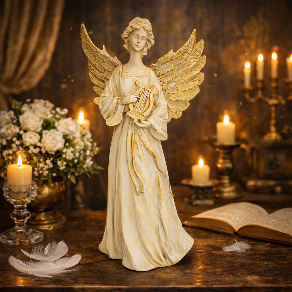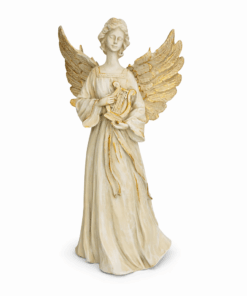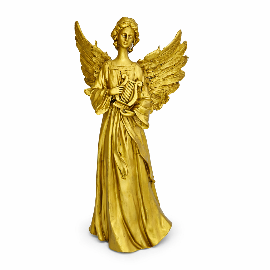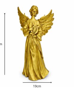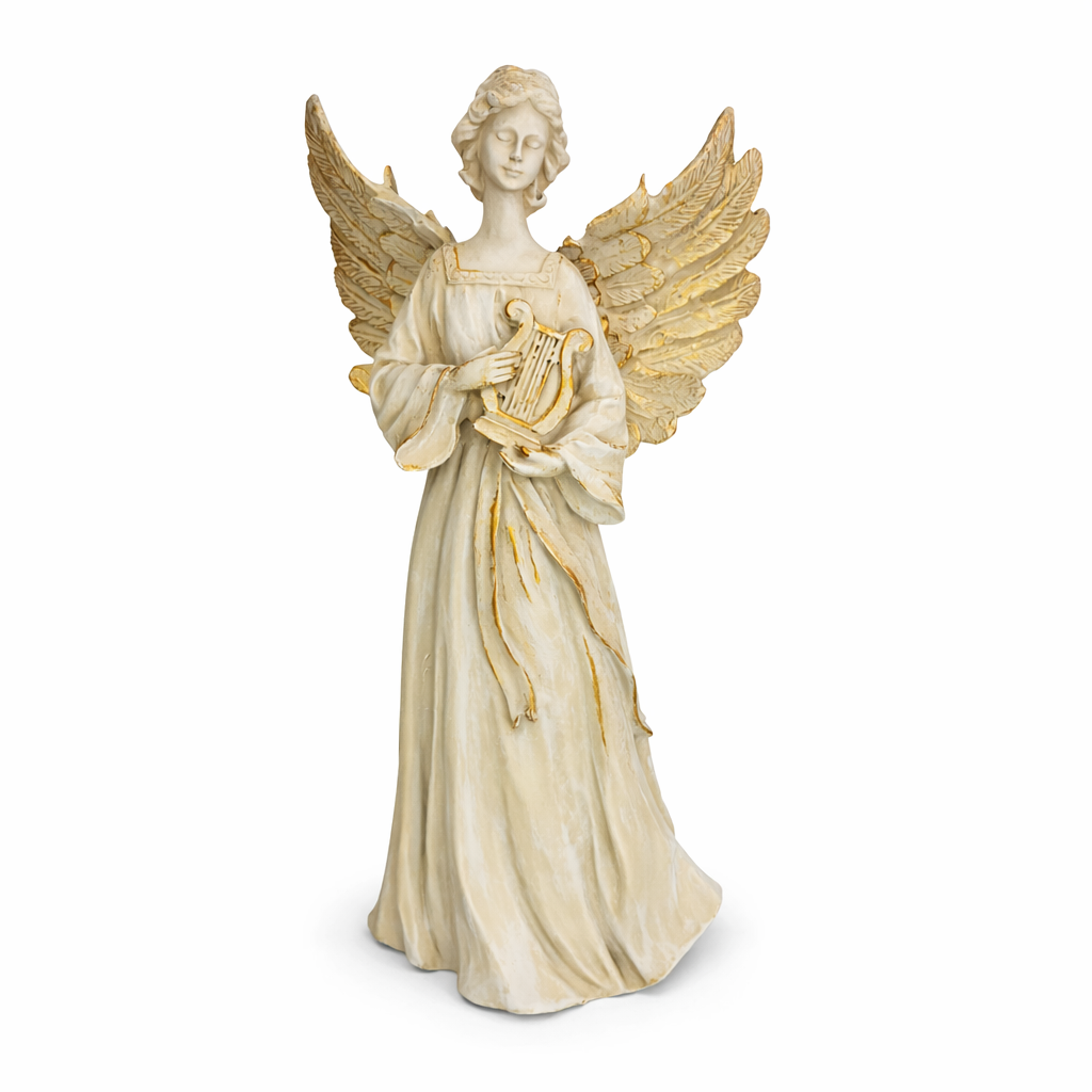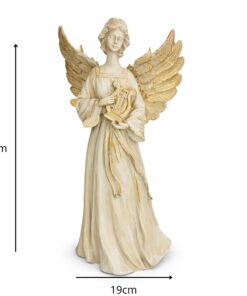 Estátua de Anjo Tocando Harpa de Resina – 33×18 cm