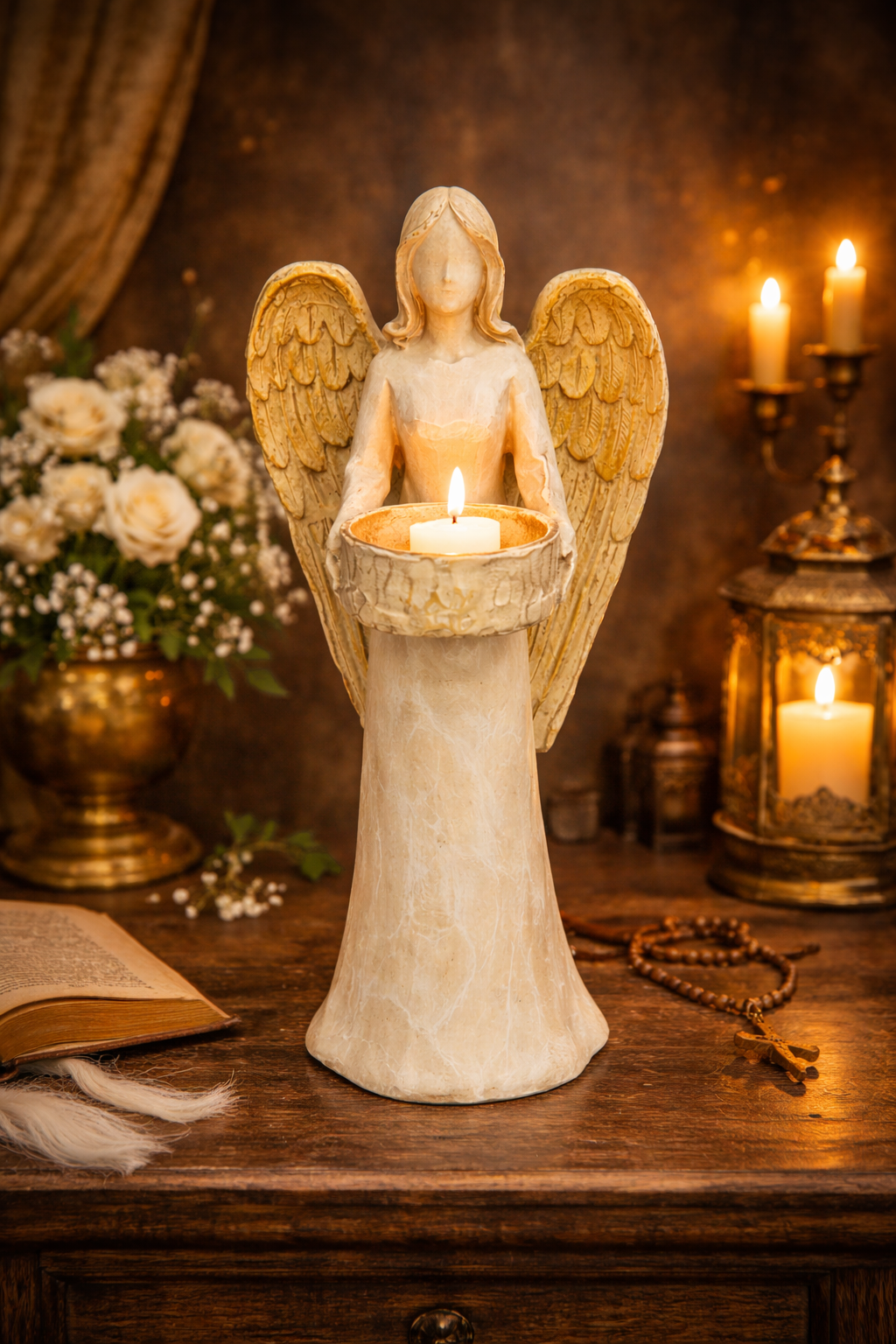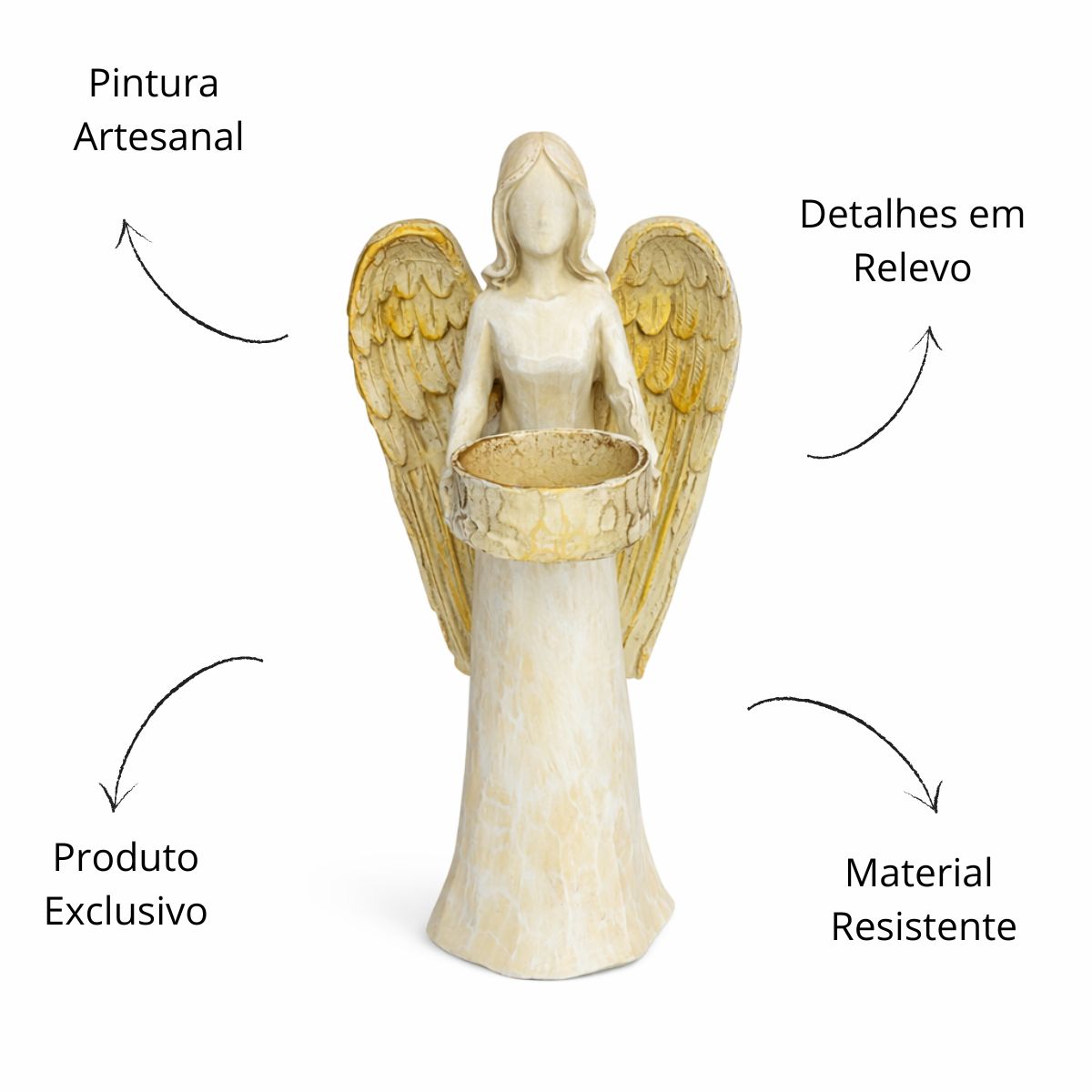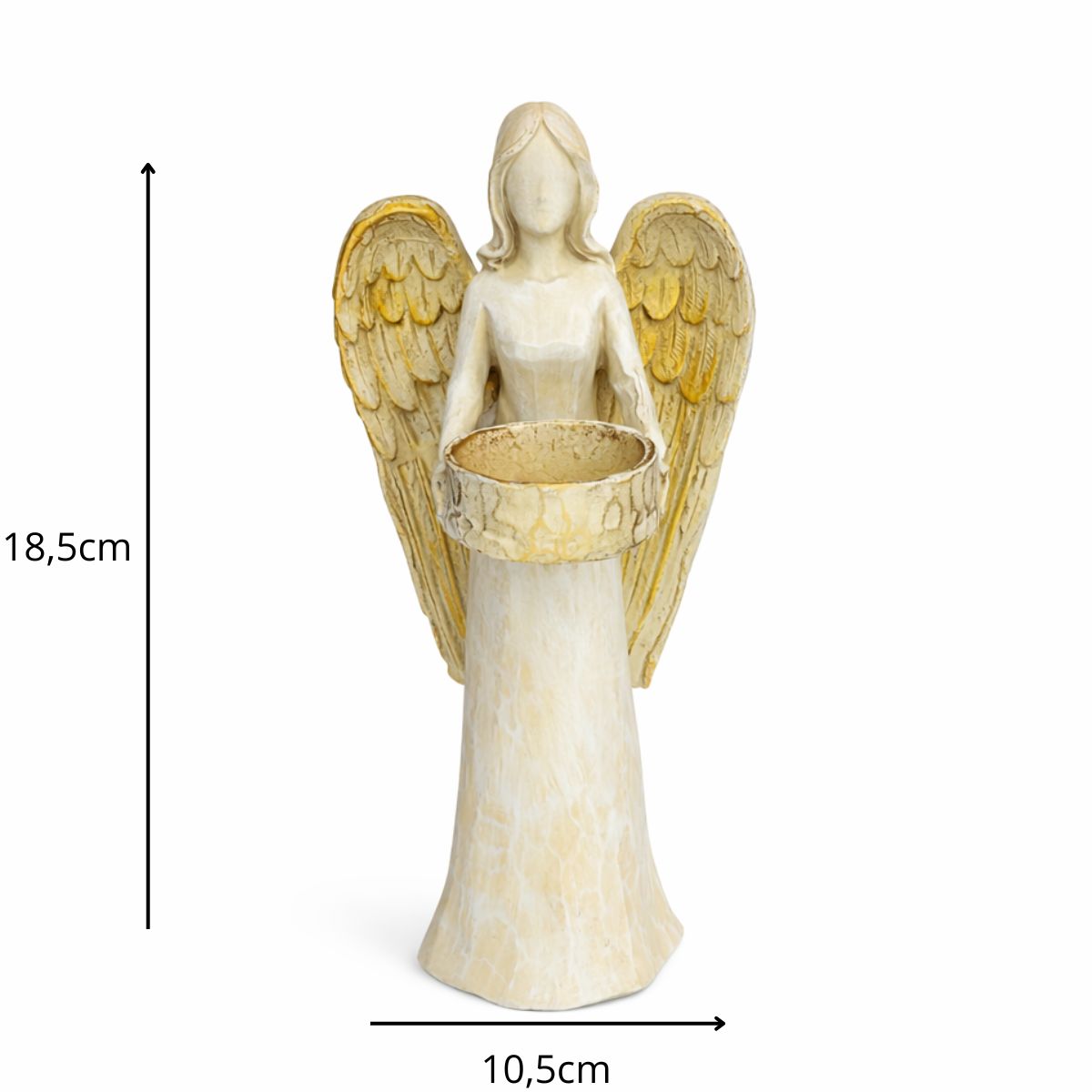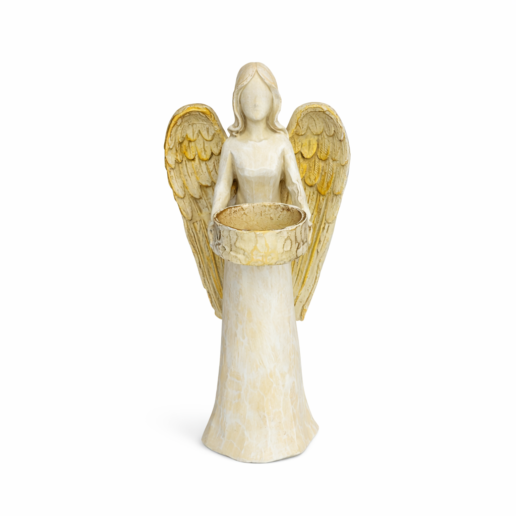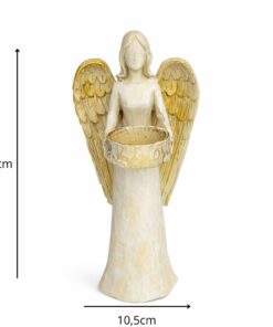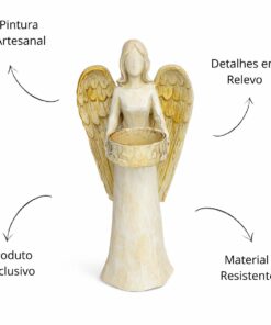 Ilumine e harmonize seu ambiente com esta linda estátua de anjo porta-vela, símbolo de proteção, luz e serenidade. Produzida em resina de alta qualidade, apresenta acabamento delicado e detalhes refinados que transmitem paz e espiritualidade.