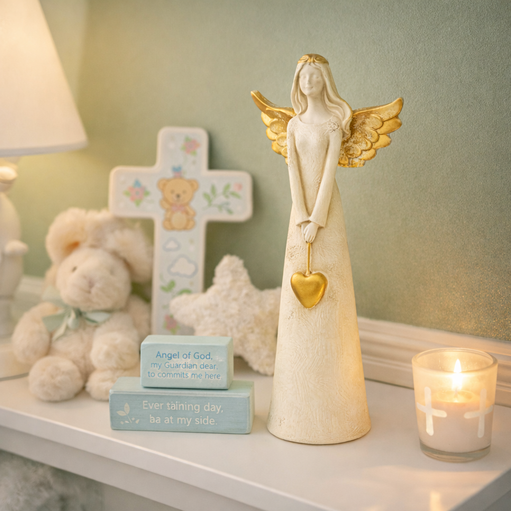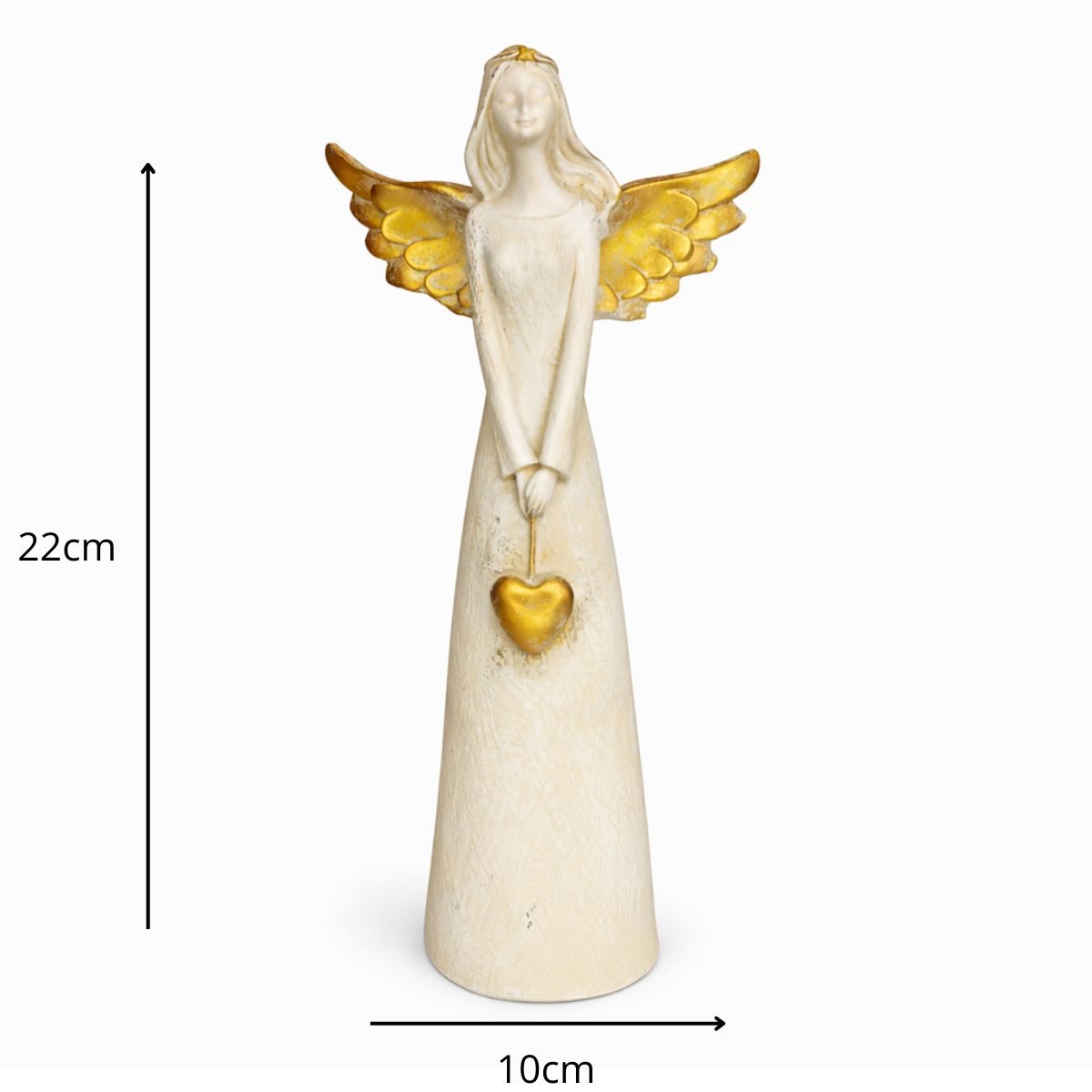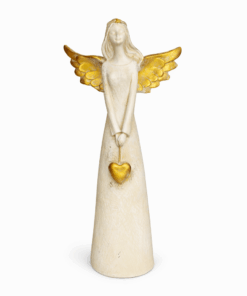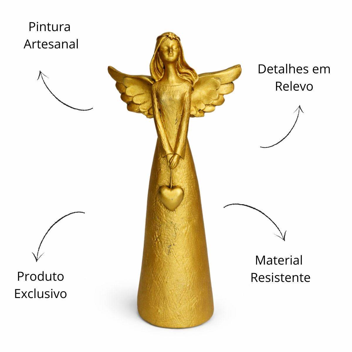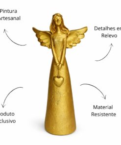 Encante seu ambiente com a delicadeza e o simbolismo desta linda anja em resina, com acabamento dourado e traços suaves que transmitem paz, proteção e amor.