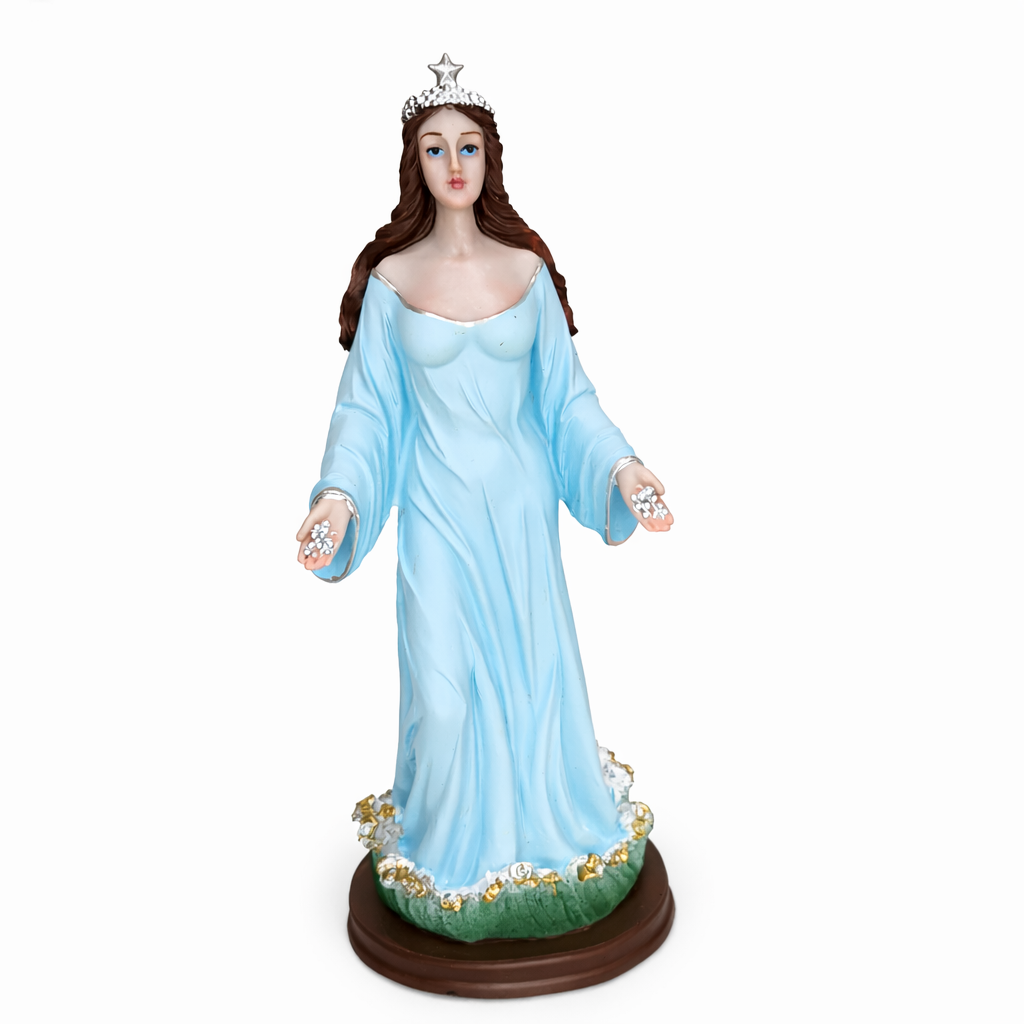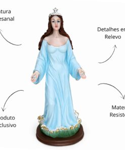 Confeccionada em resina de alta qualidade, esta imagem apresenta acabamento cuidadoso e pintura detalhada, transmitindo suavidade, força espiritual e presença marcante. Ideal para altares, congás, espaços religiosos, casas de axé ou decoração espiritual, sendo também uma excelente opção de presente religioso.