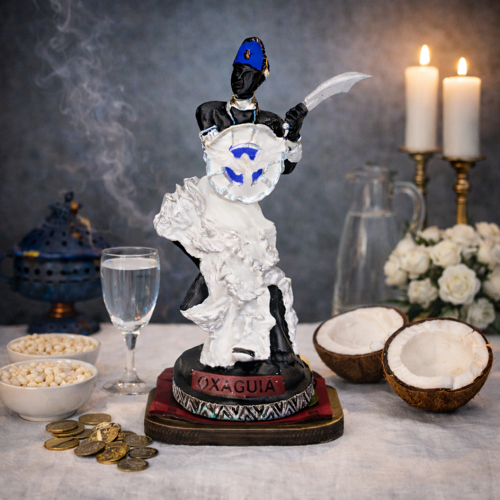 A imagem de Oxaguiã, qualidade jovem de Oxalá, representa a força da fé, da renovação, da perseverança e da vitória através da luta justa. Oxaguiã é símbolo do movimento, da coragem e da determinação, sendo associado à juventude espiritual, à clareza de pensamento e à conquista de novos caminhos.