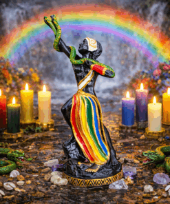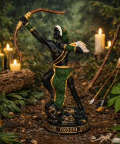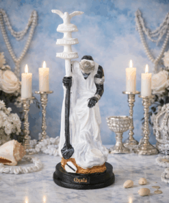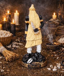 Produzida em resina de alta qualidade, com pintura totalmente artesanal, esta peça é ideal para quem cultua a Umbanda com respeito e consciência espiritual. Seu acabamento detalhado transmite força, firmeza e presença energética.