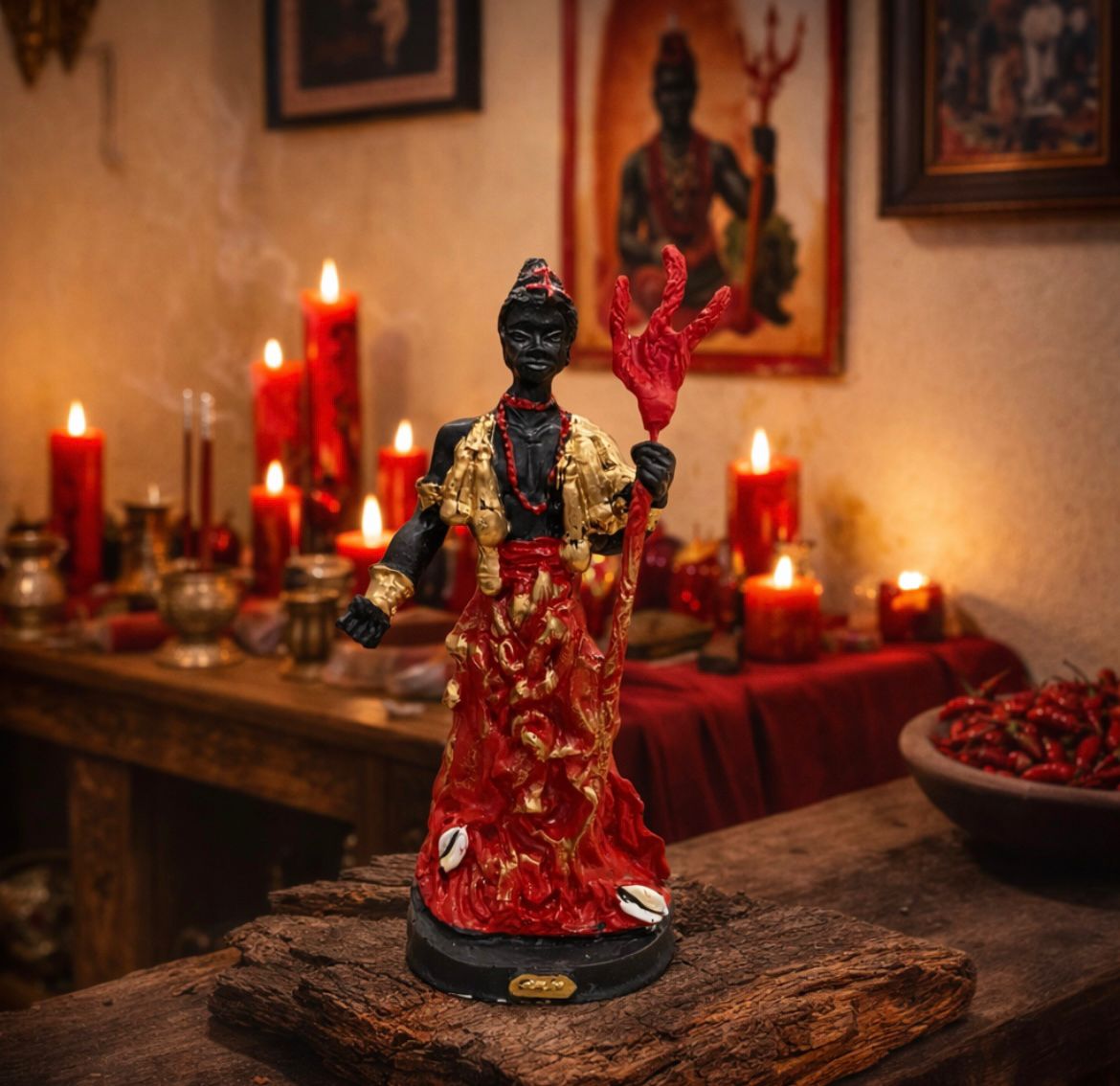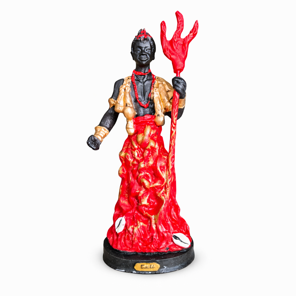 A imagem de Exu representa o guardião dos caminhos, responsável pela proteção espiritual, justiça, equilíbrio e abertura de oportunidades. Exu atua como mensageiro entre os planos espiritual e material, sempre dentro da lei divina.