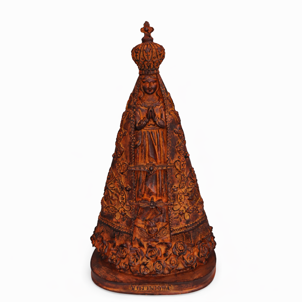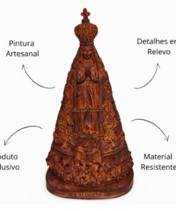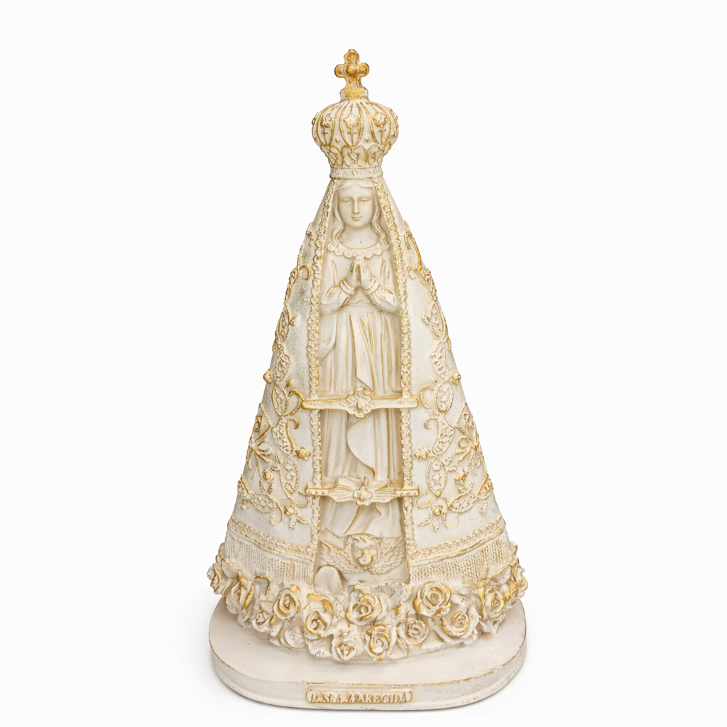 Nossa Senhora Aparecida, Padroeira do Brasil, é símbolo de fé, esperança e proteção para milhões de devotos. Sua imagem representa a presença materna de Maria junto ao povo brasileiro, especialmente nos momentos de dificuldade e gratidão. Esta imagem de Nossa Senhora Aparecida, feita em resina com pintura 100% artesanal, leva ao seu lar ou altar uma presença de amor, paz e devoção.