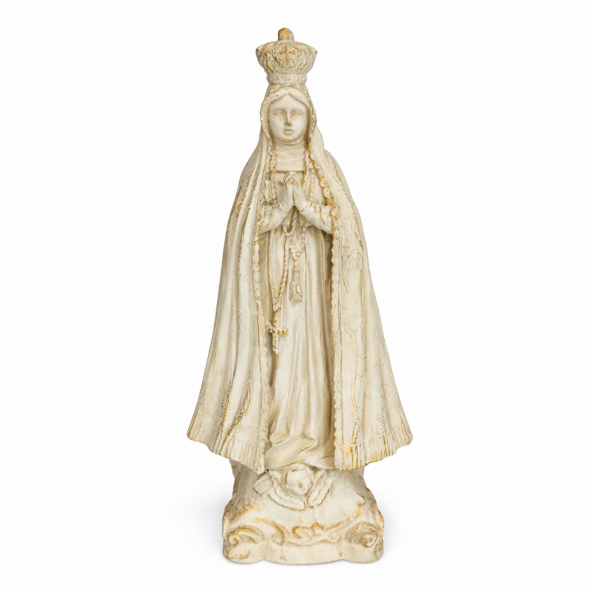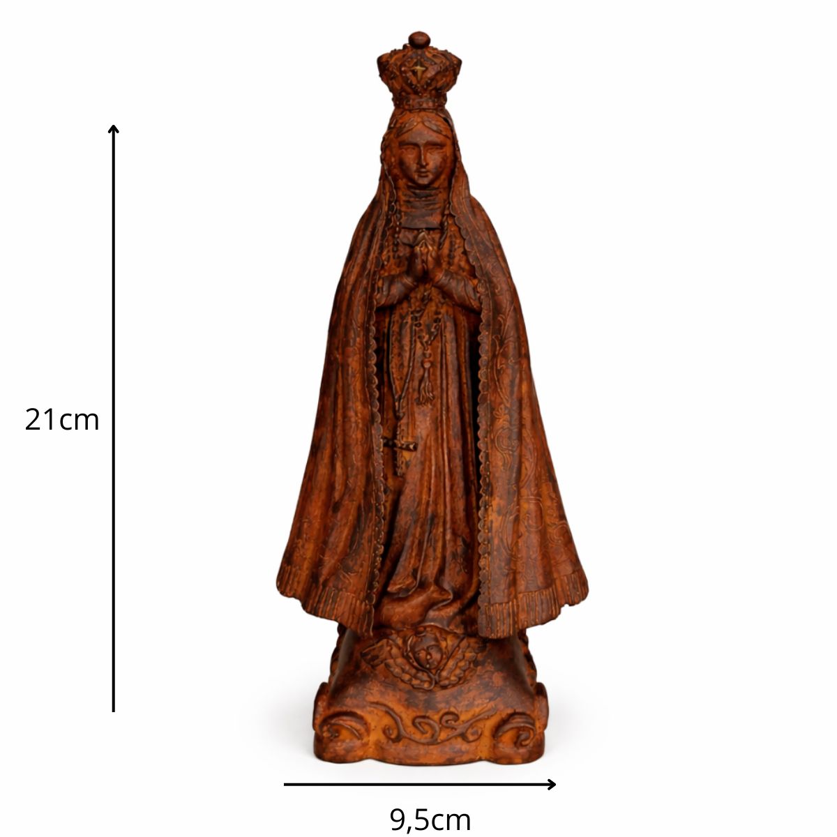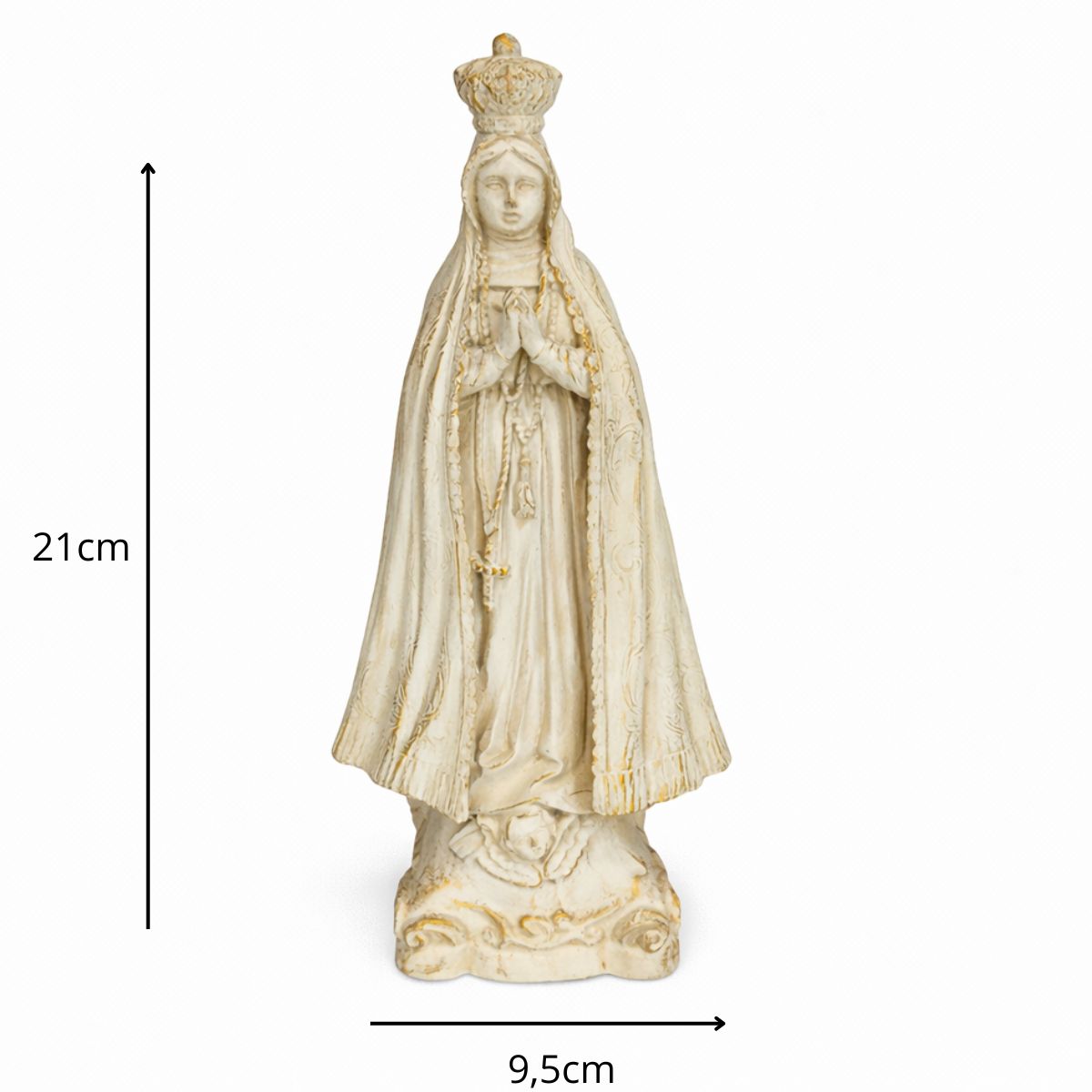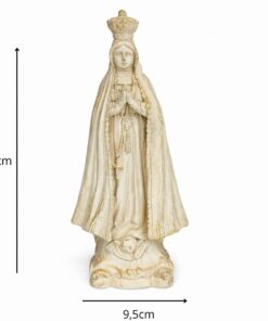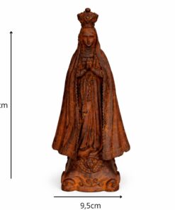 Com 21 cm de altura e 9,5 cm de largura, esta peça é confeccionada em resina de alta qualidade, com pintura 100% artesanal, destacando os detalhes do manto azul e o semblante acolhedor da Virgem. Ideal para oratórios, ambientes de oração ou como um presente especial de devoção.