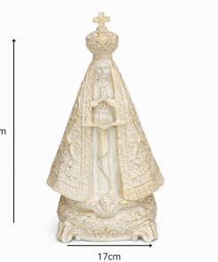 Esta linda imagem de Nossa Senhora Aparecida, com 33 cm de altura e 17 cm de largura, é uma peça de grande devoção e fé. Feita com materiais de alta qualidade, ela é ideal para decoração de sua casa, altar ou espaço de oração. Seu design detalhado e acabamento cuidadoso refletem a serenidade e a proteção que Nossa Senhora oferece a todos os fiéis.