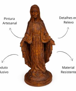 Detalhadamente esculpida, esta estátua traz em sua imagem a serenidade e a graça que Nossa Senhora transmite a todos. Ideal para colocar em altares, oratórios ou como presente especial para quem deseja fortalecer a fé.