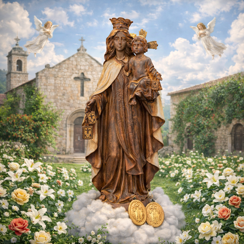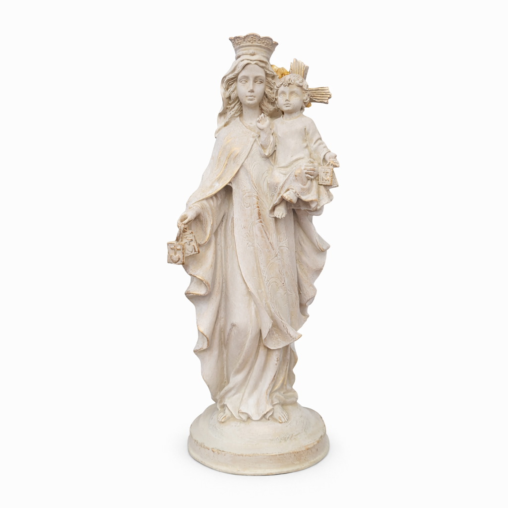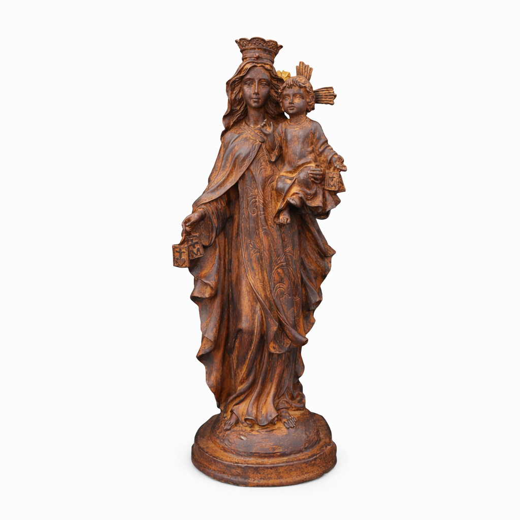 Nossa Senhora do Carmo é a padroeira da Ordem Carmelita e conhecida por oferecer o escapulário como sinal de salvação, proteção e devoção. Sua imagem inspira fé, entrega e confiança na presença materna da Virgem Maria em nossa jornada espiritual.