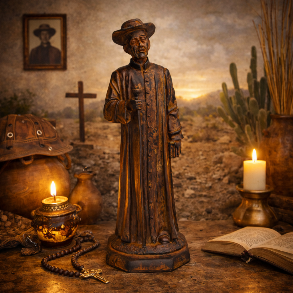 Padre Cícero é uma das figuras mais queridas e veneradas do Nordeste brasileiro, símbolo de fé, caridade e devoção popular. Sua imagem representa acolhimento, sabedoria e a esperança de um povo que encontrou nele um verdadeiro guia espiritual.