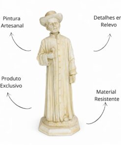 Com 20 cm de altura e 7 cm de largura, esta peça é feita em resina de alta qualidade, com pintura 100% artesanal, destacando os traços serenos e o semblante marcante do “Padim Ciço”. Ideal para quem deseja expressar sua devoção ou presentear com fé e tradição.