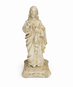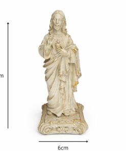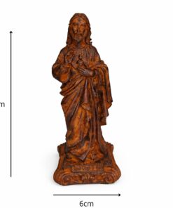Com 15 cm de altura e 6 cm de largura, a peça é esculpida com detalhes delicados que destacam o coração de Cristo, envolto em chamas de amor e cercado pela coroa de espinhos — sinal de sua entrega total por nós. Ideal para quem deseja fortalecer sua fé e sentir a presença constante do amor de Jesus.