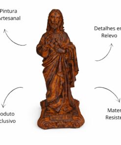 O Sagrado Coração de Jesus é a expressão mais profunda do amor, da misericórdia e da compaixão de Cristo pela humanidade. Sua imagem representa o coração divino que acolhe, perdoa e guia todos os que nele confiam, sendo símbolo de fé, esperança e salvação. Esta imagem, feita em resina com pintura 100% artesanal, leva a presença abençoada e amorosa de Jesus para o seu lar, altar ou local de oração.