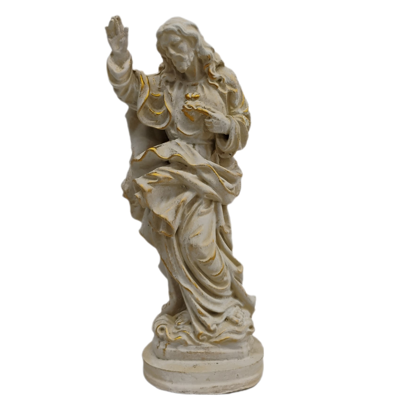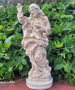 Com 21 cm de altura e 7,5 cm de largura, a peça é produzida em resina de alta qualidade, com pintura 100% artesanal, que destaca a delicadeza dos detalhes e a expressão serena de Cristo. Ideal para momentos de oração, espaços de devoção ou como presente carregado de significado espiritual.