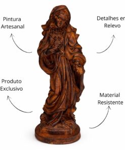 Com 21 cm de altura e 7,5 cm de largura, a peça é produzida em resina de alta qualidade, com pintura 100% artesanal, ressaltando a suavidade dos traços e a serenidade no olhar de Nossa Senhora. Ideal para momentos de oração, espaços de devoção ou como presente cheio de significado espiritual.