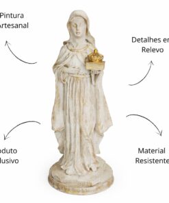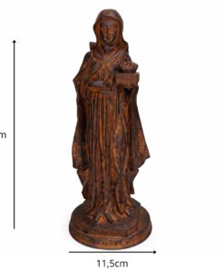Com 29 cm de altura e 11,5 cm de largura, esta imagem é produzida em resina de alta qualidade, com pintura 100% artesanal, evidenciando os detalhes do hábito religioso e a expressão serena da santa. Ideal para quem busca conforto espiritual ou deseja presentear com fé e esperança.