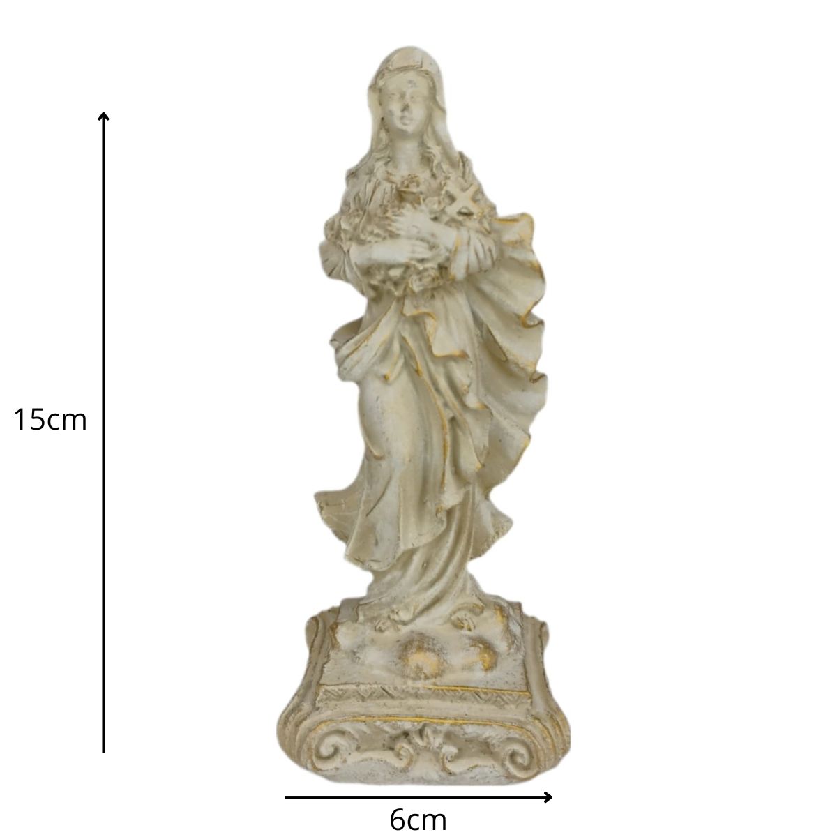 Com 15 cm de altura e 6 cm de largura, a peça é esculpida com delicadeza, destacando os símbolos característicos da santa — o hábito carmelita, as rosas e o crucifixo — que representam seu amor e entrega a Jesus. Ideal para quem deseja fortalecer sua fé e devoção.
