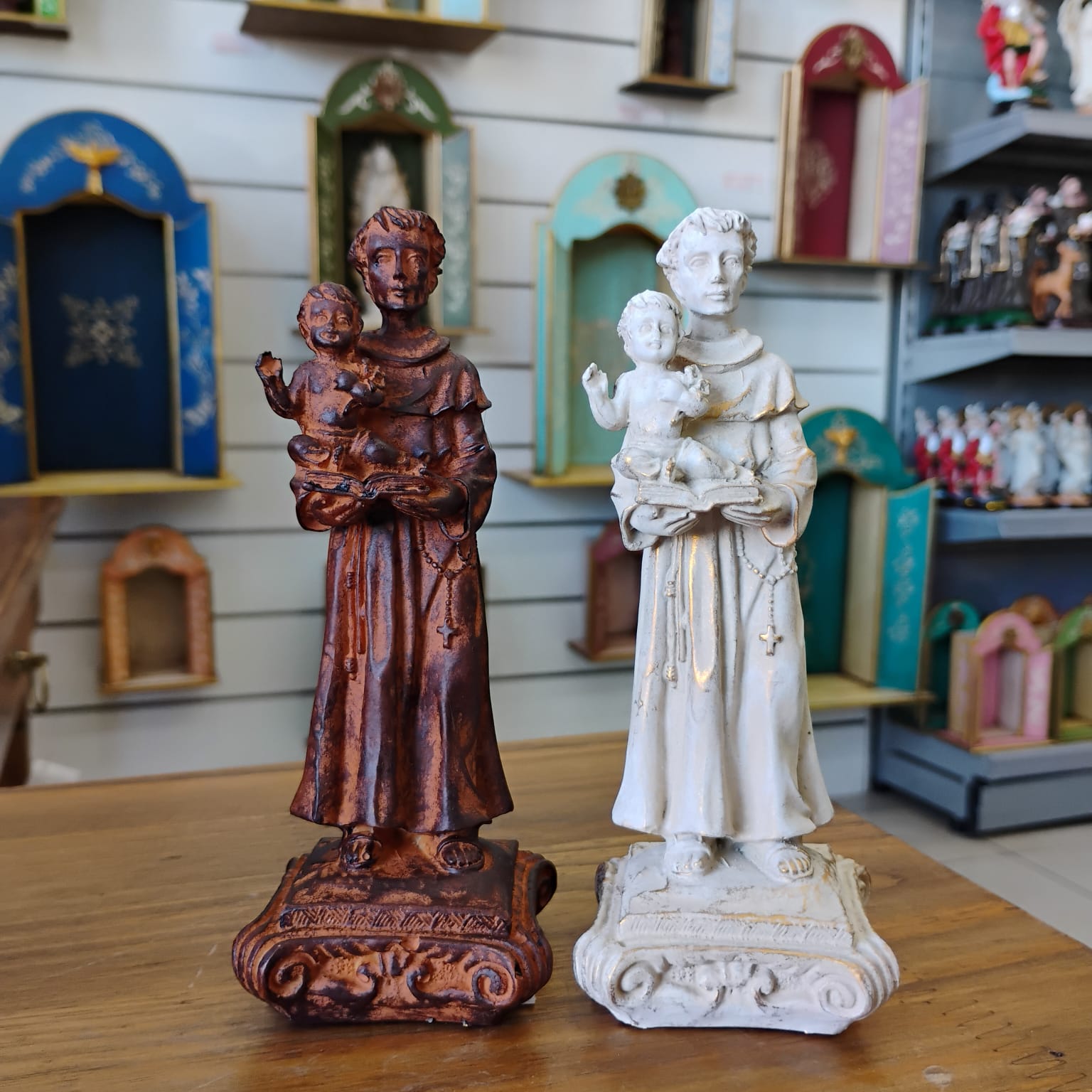 Santo Antônio é um dos santos mais populares e queridos da Igreja Católica, conhecido como o santo dos milagres e casamentos, além de ser um poderoso intercessor nas causas difíceis. Sua imagem representa o amor, a fé e a esperança, sendo um símbolo de devoção e confiança na providência divina. Esta imagem de Santo Antônio, confeccionada em resina com pintura 100% artesanal, é perfeita para trazer bênçãos e proteção ao seu lar, altar ou local de trabalho.