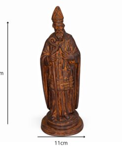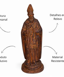 Com 30 cm de altura e 11 cm de largura, esta peça é produzida em resina de alta qualidade, com pintura 100% artesanal, ressaltando cada detalhe do santo com devoção e delicadeza. Ideal para altares, oratórios ou como presente especial para quem cultiva a fé cristã.