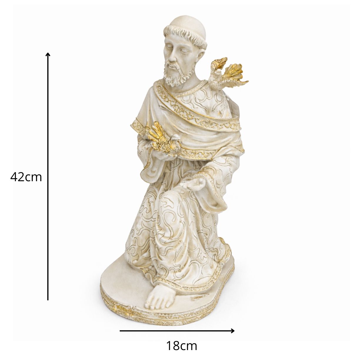 Imagem de São Francisco Ajoelhado – Resina, Pintura Artesanal (42×18 cm)