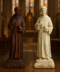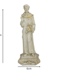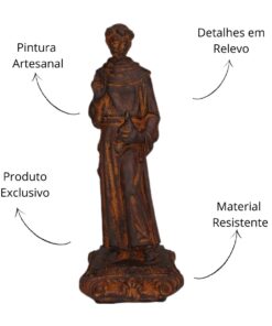 Esta imagem, feita em resina com pintura 100% artesanal, retrata o santo com detalhes que expressam sua serenidade e devoção, trazendo para o lar a energia da paz e da compaixão franciscana.