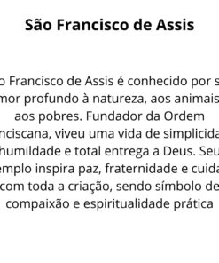 São Francisco de Assis é conhecido como o santo protetor dos animais e da natureza, exemplo de humildade, simplicidade e amor à criação divina. Sua vida foi marcada pela entrega total a Deus, pela caridade e pelo desejo de viver em perfeita harmonia com todas as criaturas. A imagem de São Francisco inspira paz, fraternidade e fé sincera, sendo ideal para quem busca fortalecer sua espiritualidade e cultivar o amor ao próximo.