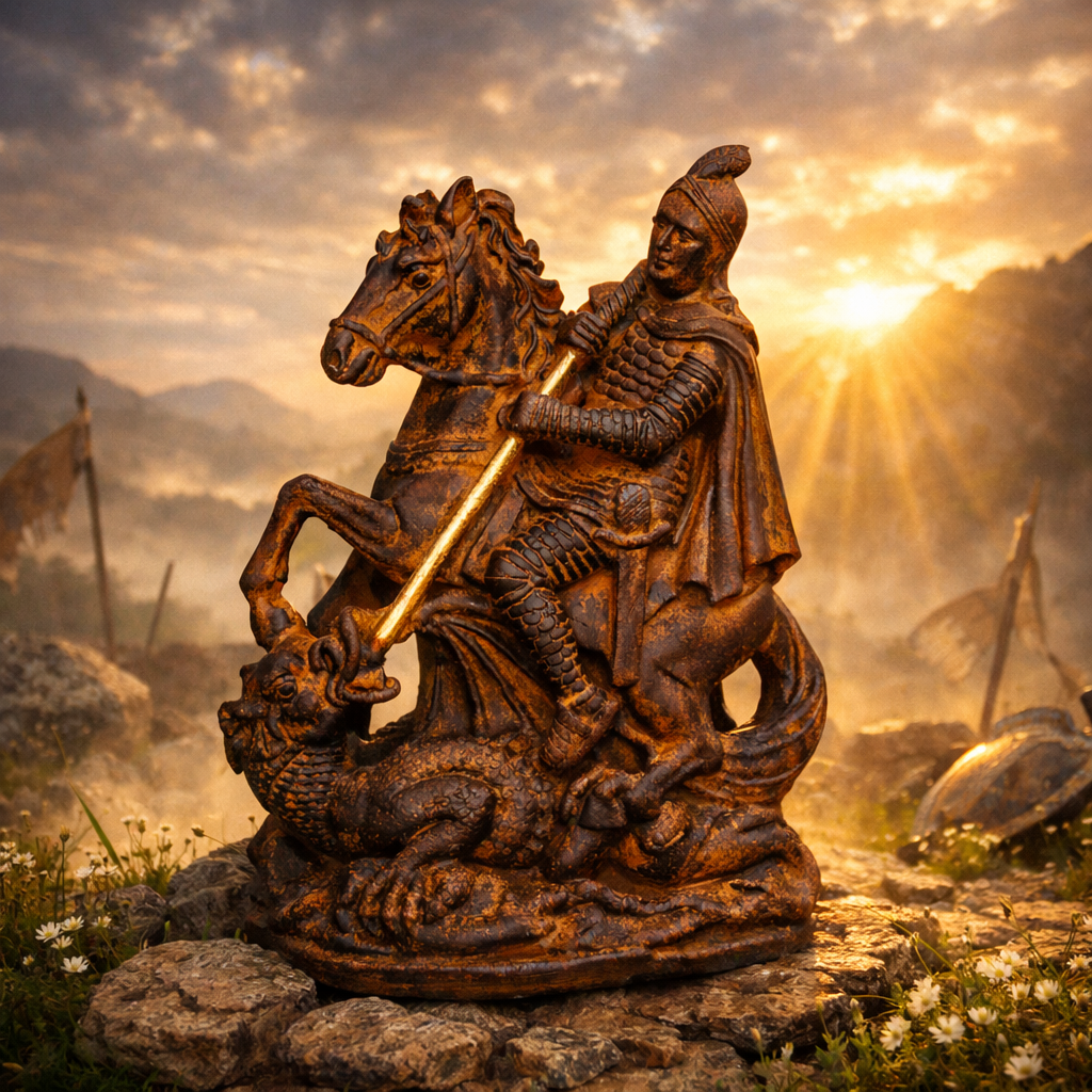 Encante seu espaço com a imagem de São Jorge, símbolo de fé, proteção e coragem. Esta linda estátua, com 18 cm de altura e 12 cm de largura, é o tamanho perfeito para exibição em qualquer ambiente, seja em sua casa, escritório ou altar.