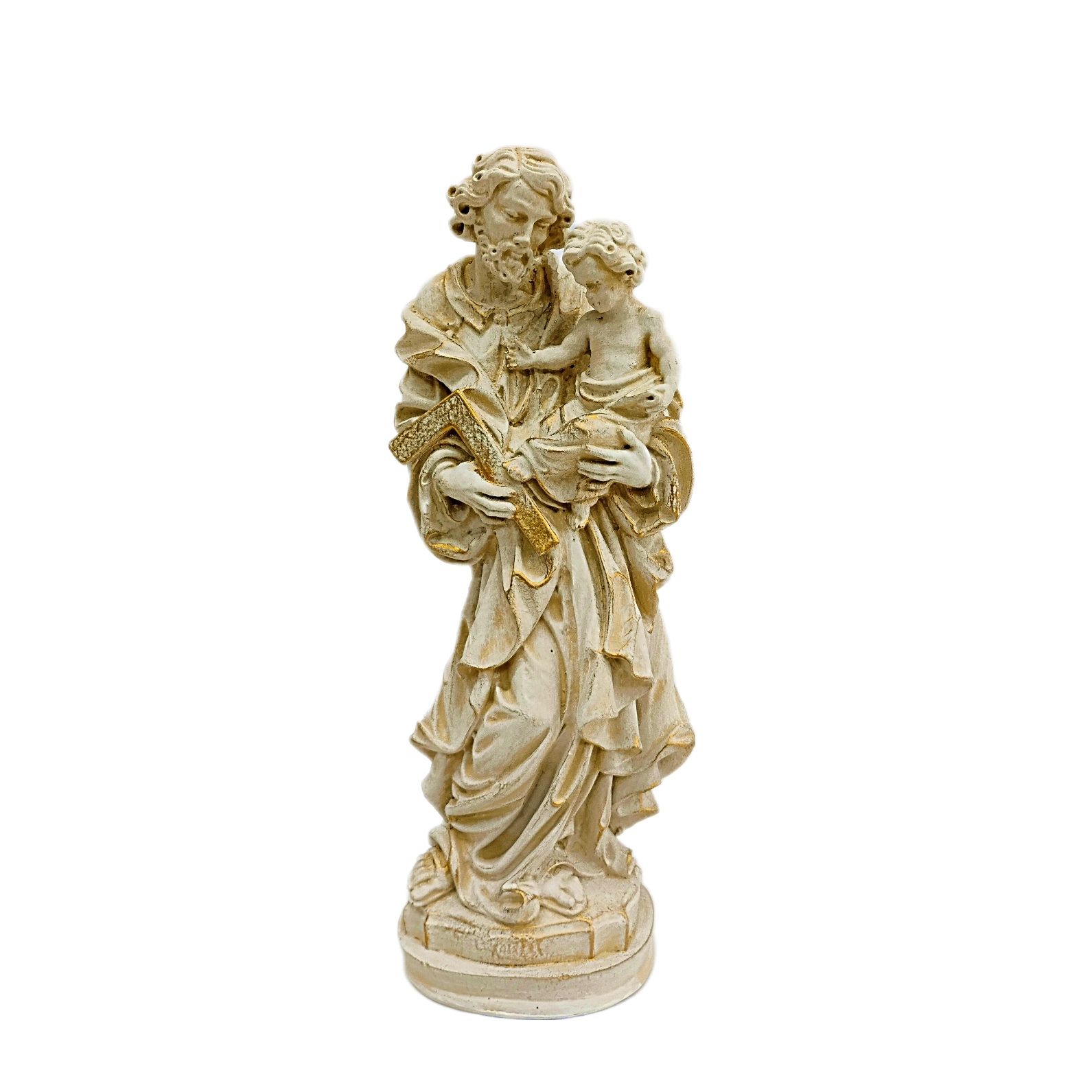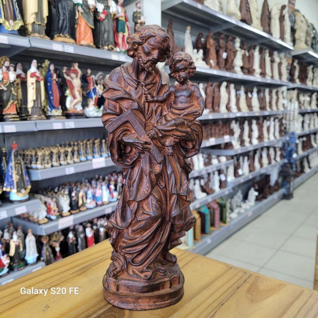 São José, esposo da Virgem Maria e pai adotivo de Jesus, é um modelo de fé, humildade e dedicação à família. Representado com um semblante sereno e protetor, segurando o bastão e com o Menino Jesus em seus braços, ele nos ensina a viver a vida com diligência, amor e devoção a Deus. Esta imagem de São José, feita em resina com pintura 100% artesanal, traz toda a devoção e proteção desse santo para o seu lar ou altar.